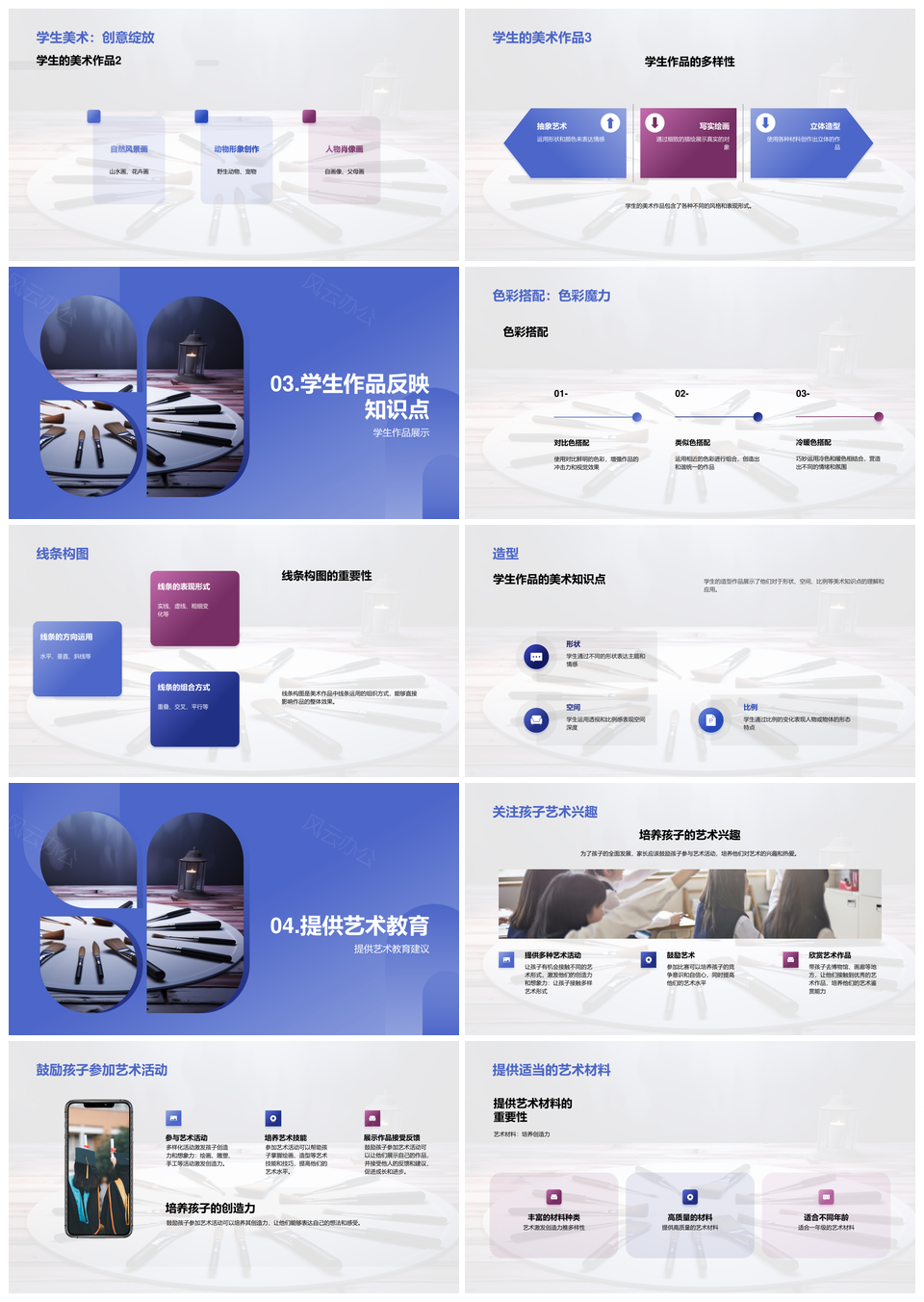 这是一张一年级美术启航佳作展创意绘技色构艺趣PPT模板,包含美术、启航、佳作展、创意、绘技、色构、艺趣等主题内容,也可用作一年级美术启航佳作展、美术启航佳作展创意、启航佳作展创意绘技、佳作展创意绘技色构、创意绘技色构艺趣、一年级美术启航、美术启航佳作展、启航佳作展创意、佳作展创意绘技、创意绘技色构、绘技色构艺趣、一年级美术、美术启航、启航佳作展、佳作展创意等PPT场景使用。 风云办公提供的一年级美术启航佳作展创意绘技色构艺趣PPT模板,下载格式为pptx,一共22页,作品中文字及图均可以修改和编辑,图片更改请在作品中右键图片并更换,文字修改请直接点击文字进行修改。