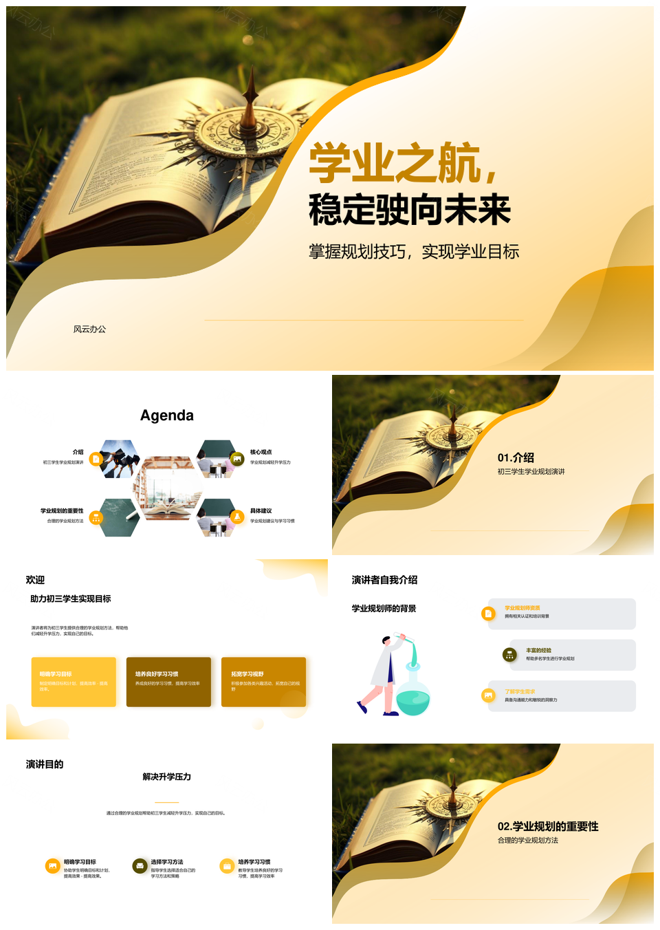 这是一张初三学业规划稳航指南针目标计划方法习惯PPT模板,包含初三、学业规划、稳航、指南针、目标、计划、方法、习惯等主题内容,也可用作初三学业规划稳航指南针、学业规划稳航指南针目标、初三学业规划目标计划、指南针目标计划方法习惯、初三学业目标计划方法、学业规划目标计划方法、初三学业计划方法习惯、学业目标计划方法习惯、稳航指南针目标计划、规划稳航指南针目标、初三学业稳航指南针、学业稳航指南针计划、规划稳航目标计划、初三指南针计划方法、目标计划方法习惯等PPT场景使用。 风云办公提供的初三学业规划稳航指南针目标计划方法习惯PPT模板,下载格式为pptx,一共24页,作品中文字及图均可以修改和编辑,图片更改请在作品中右键图片并更换,文字修改请直接点击文字进行修改。