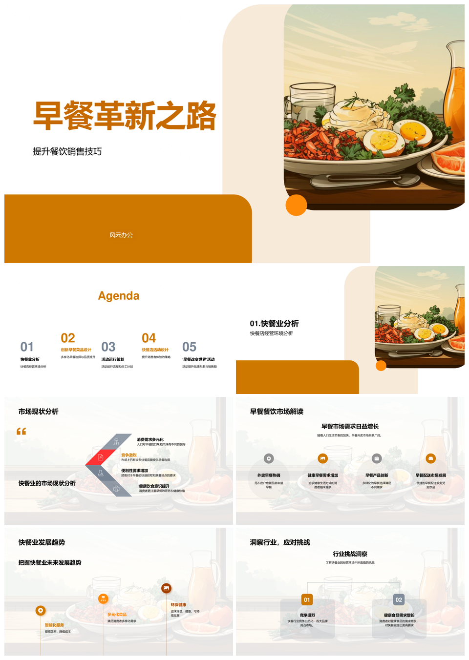 风云办公提供的快餐早餐革新创新原料多样化提升销售PPT模板,下载格式为pptx,一共28页,作品中文字及图均可以修改和编辑,图片更改请在作品中右键图片并更换,文字修改请直接点击文字进行修改。