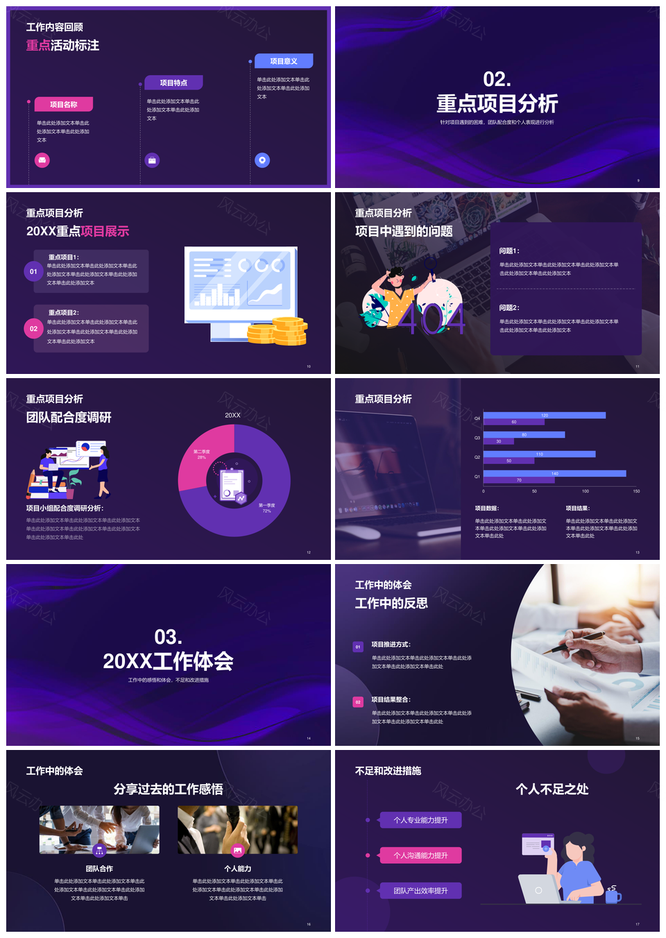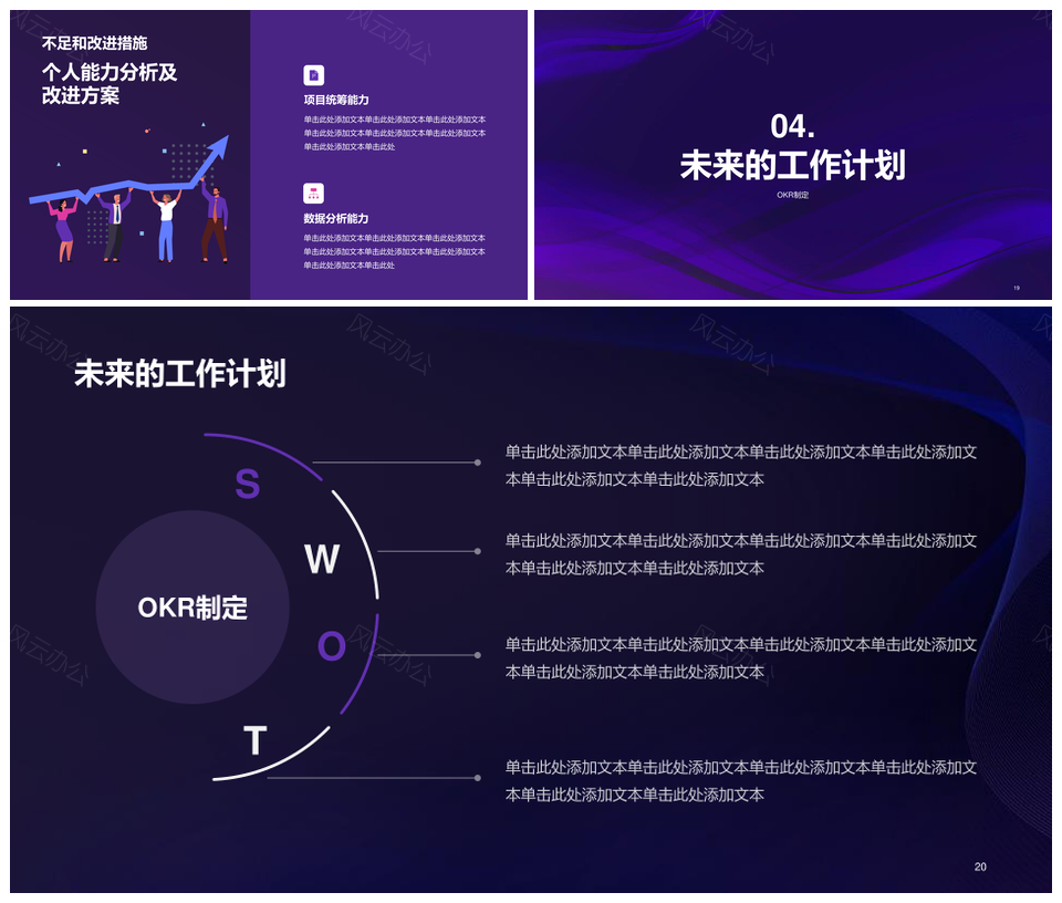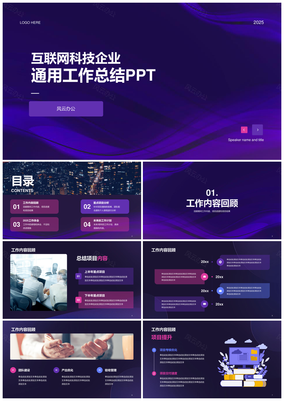 这是一张2025暗紫炫酷科技互联网创意通用工作总结PPT模板,包含2025、暗紫、炫酷、科技、互联网、创意、工作总结等主题内容,也可用作2025暗紫炫酷科技、暗紫炫酷科技互联网、炫酷科技互联网创意、科技互联网创意通用、互联网创意通用工作、创意通用工作总结、2025暗紫炫酷、暗紫炫酷科技、炫酷科技互联网、科技互联网创意、互联网创意通用、创意通用工作、通用工作总结、2025暗紫、暗紫炫酷等PPT场景使用。 风云办公提供的2025暗紫炫酷科技互联网创意通用工作总结PPT模板,下载格式为pptx,一共21页,作品中文字及图均可以修改和编辑,图片更改请在作品中右键图片并更换,文字修改请直接点击文字进行修改。