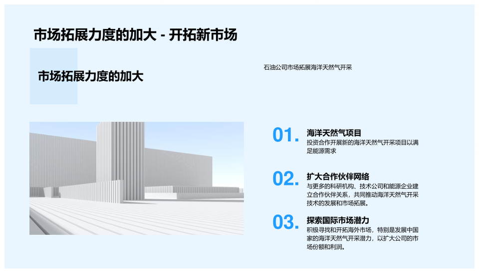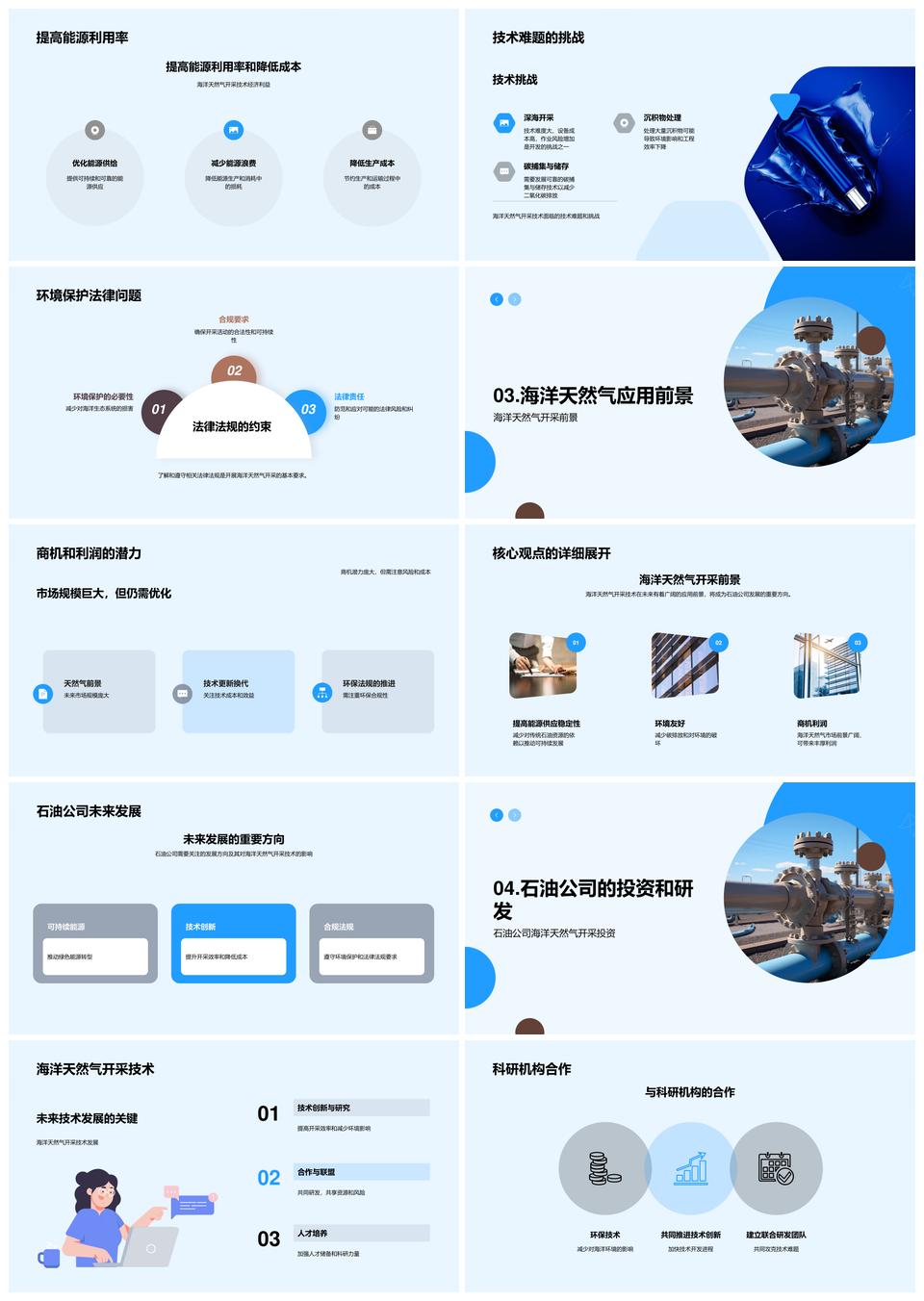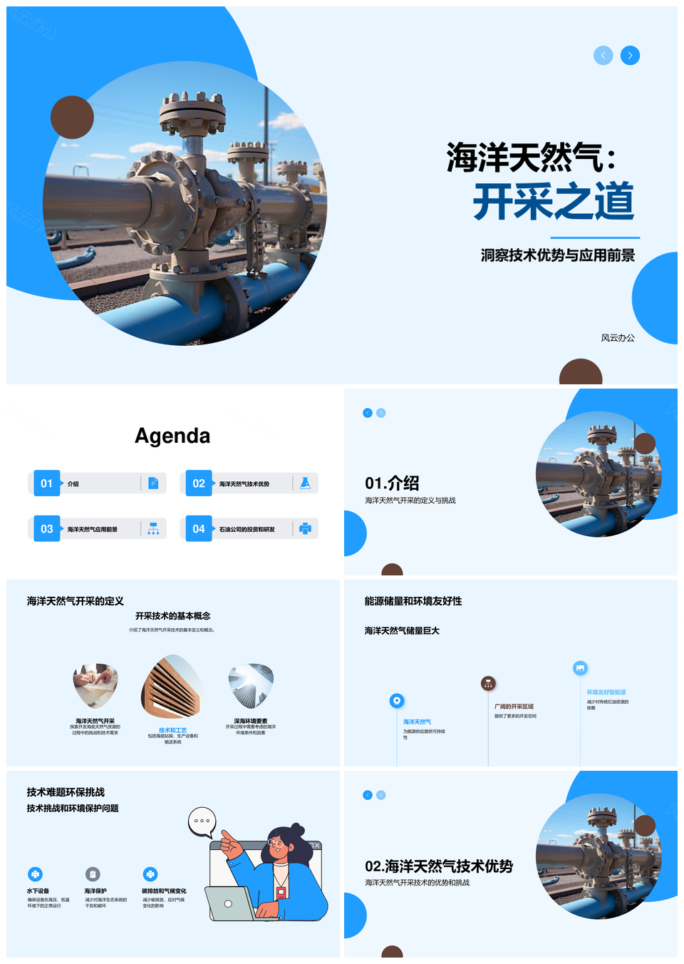 风云办公提供的海洋天然气开采技术挑战与环境保护PPT模板,下载格式为pptx,一共19页,作品中文字及图均可以修改和编辑,图片更改请在作品中右键图片并更换,文字修改请直接点击文字进行修改。