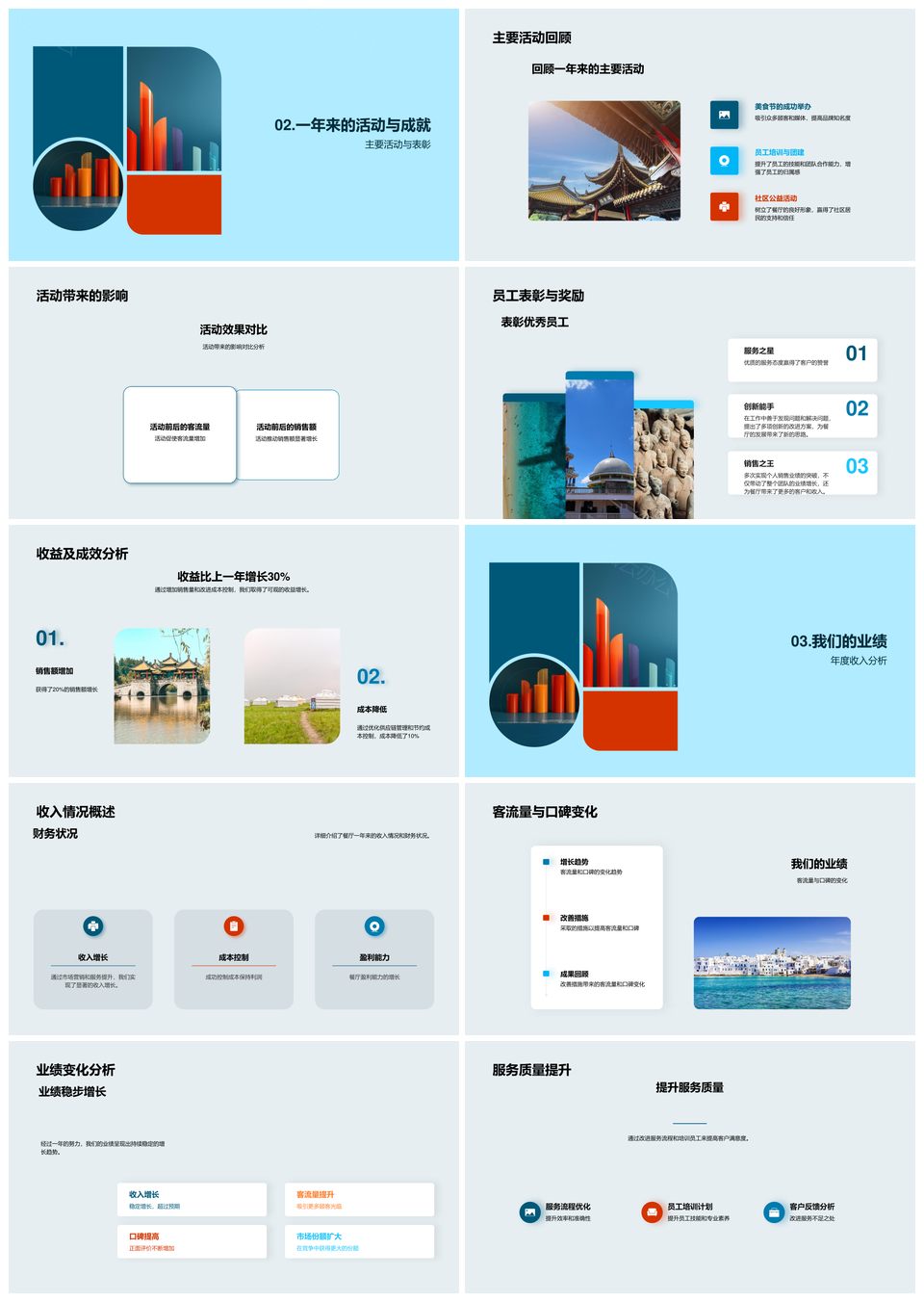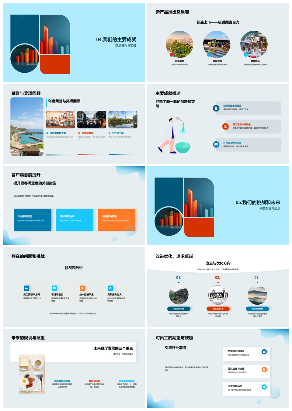 餐厅年度成长之旅文化理念核心价值员工表彰收入新品挑战PPT模板推荐