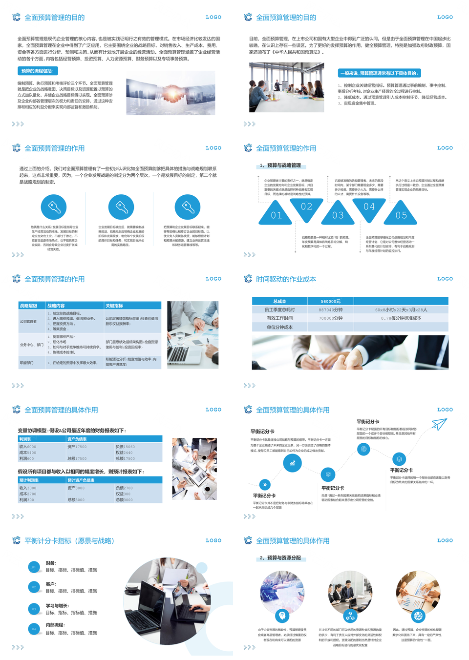 风云办公提供的蓝色简约全面预算管理动态PPT模板宣传多管理,下载格式为pptx,一共34页,作品中文字及图均可以修改和编辑,图片更改请在作品中右键图片并更换,文字修改请直接点击文字进行修改。