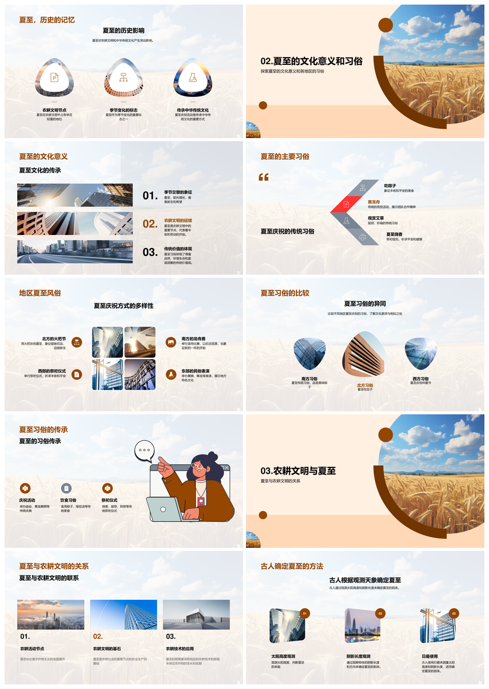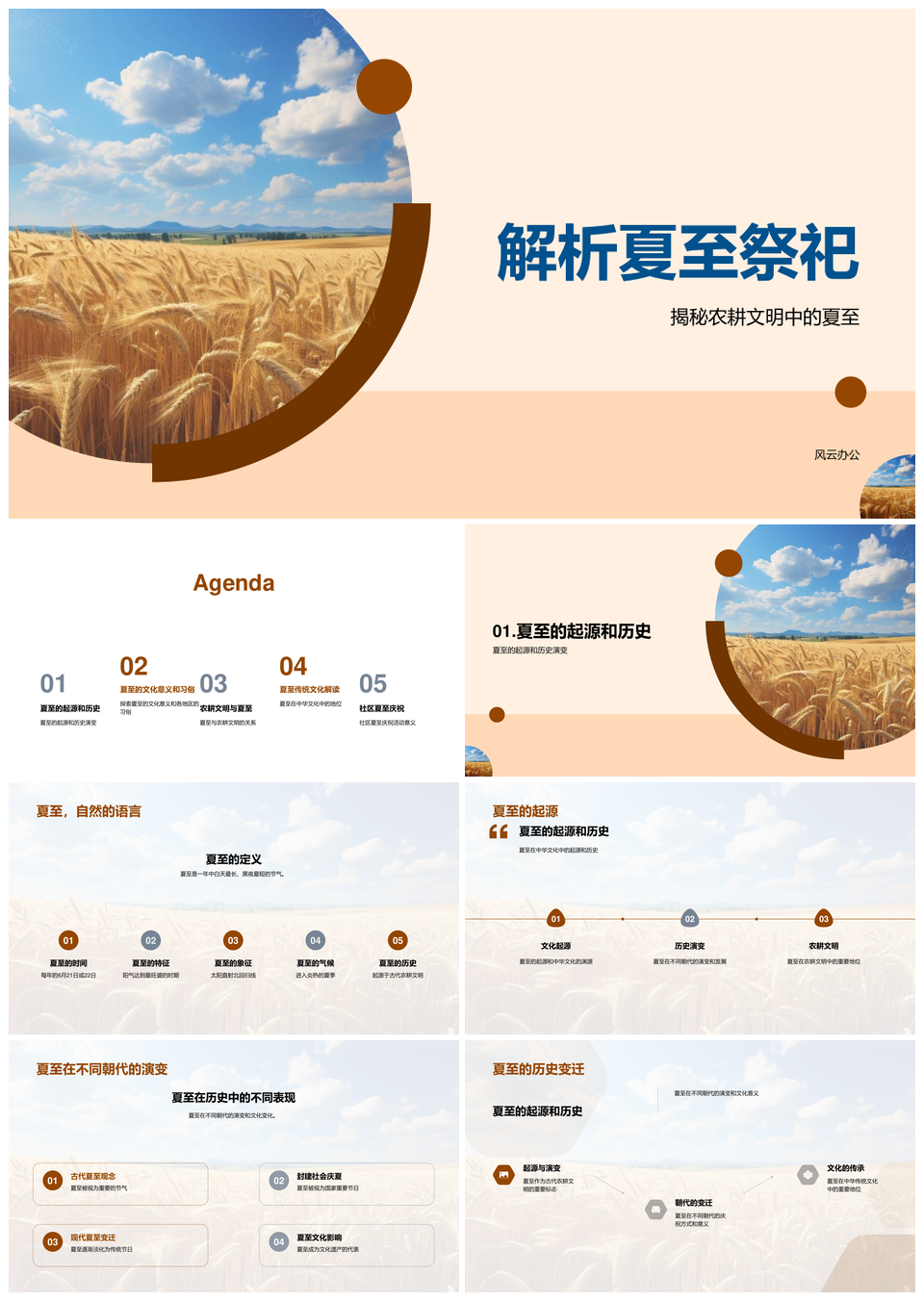 风云办公提供的夏至祭祀农耕文明起源演变习俗文化PPT模板,下载格式为pptx,一共33页,作品中文字及图均可以修改和编辑,图片更改请在作品中右键图片并更换,文字修改请直接点击文字进行修改。