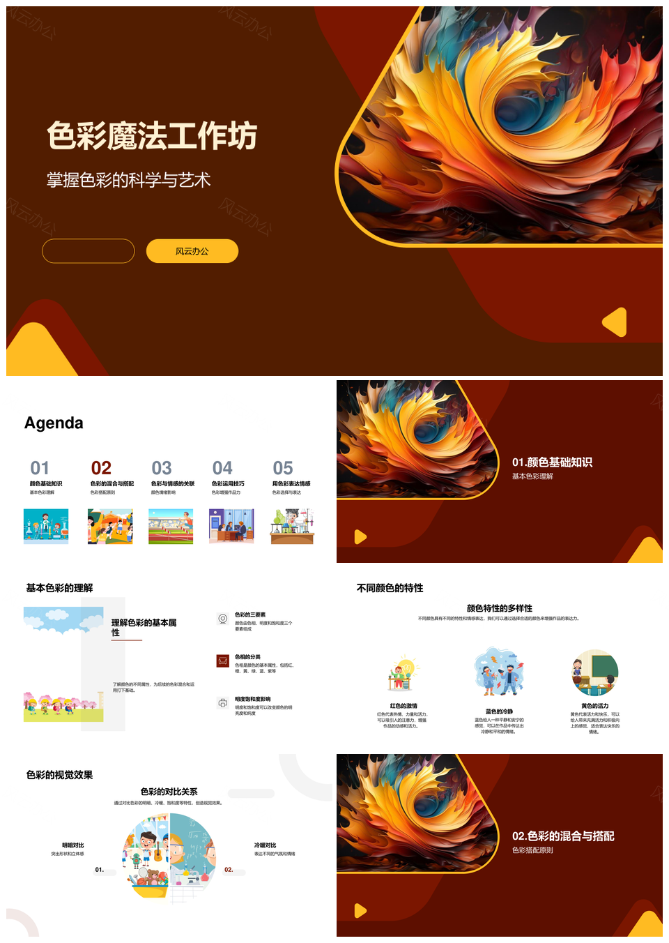 色彩魔法三原色轮绘技情感视效主题PPT模板