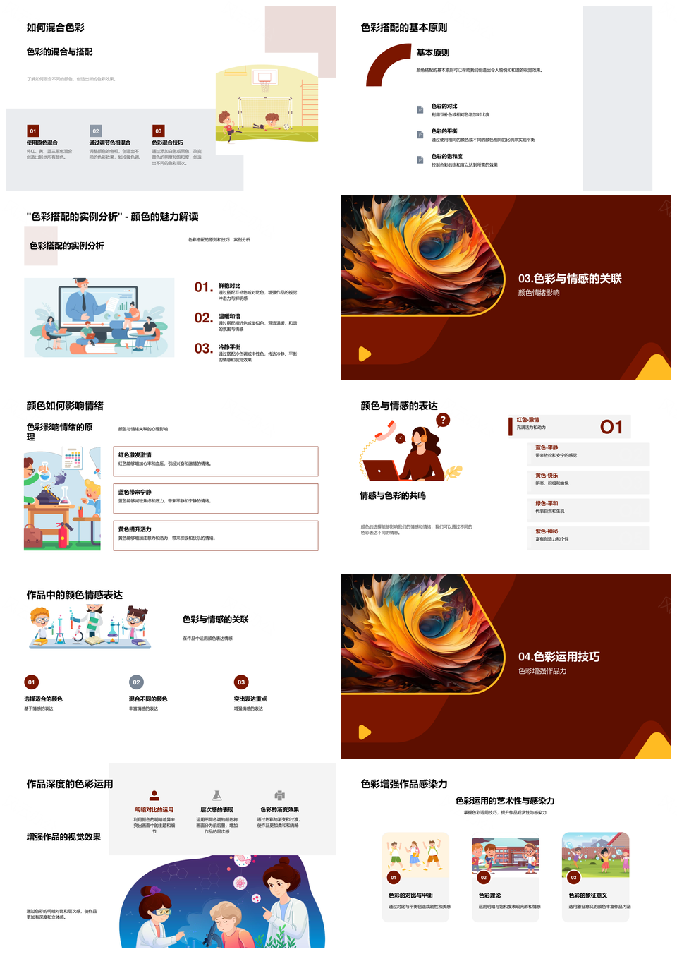 2025美术教育色彩理论搭配视觉情感艺术创作PPT模板
