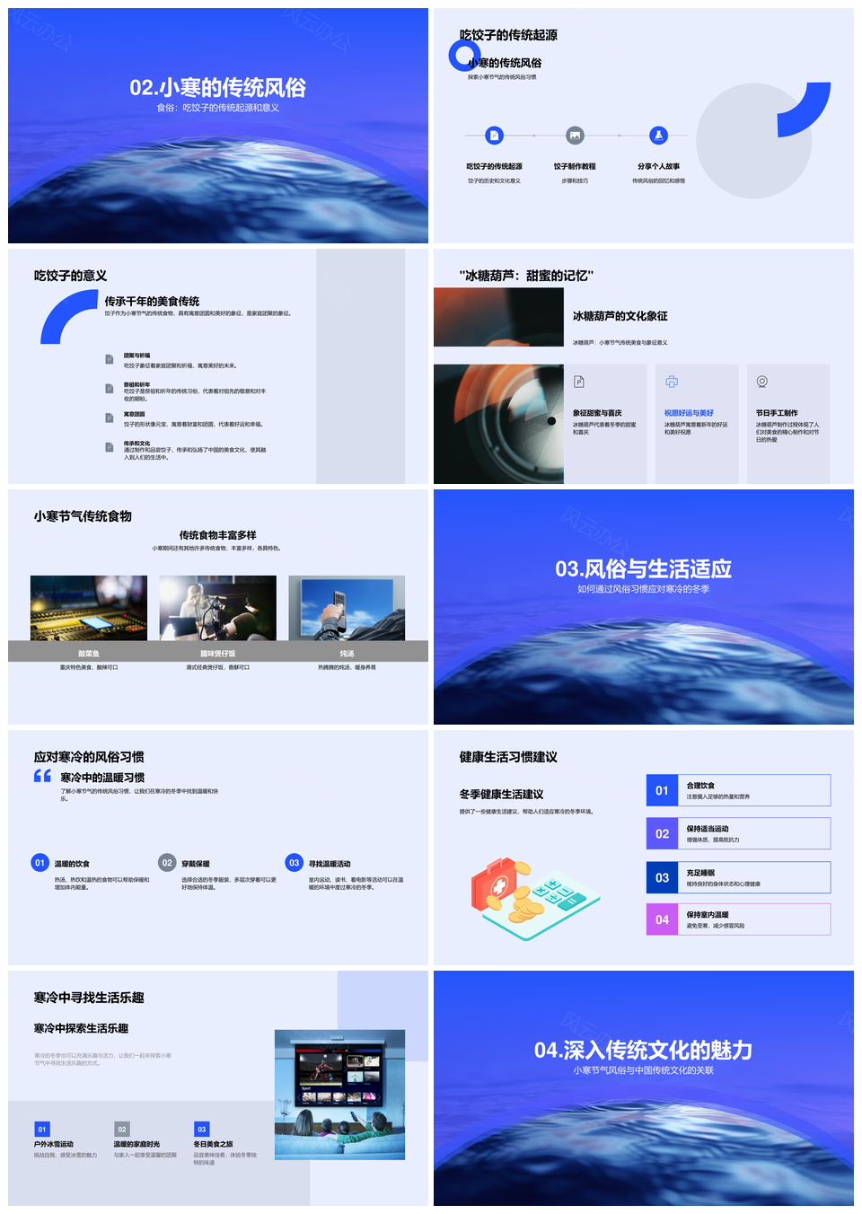 风云办公提供的小寒传统现代生活健康节气PPT分享,下载格式为pptx,一共25页,作品中文字及图均可以修改和编辑,图片更改请在作品中右键图片并更换,文字修改请直接点击文字进行修改。