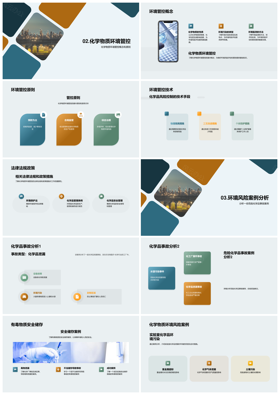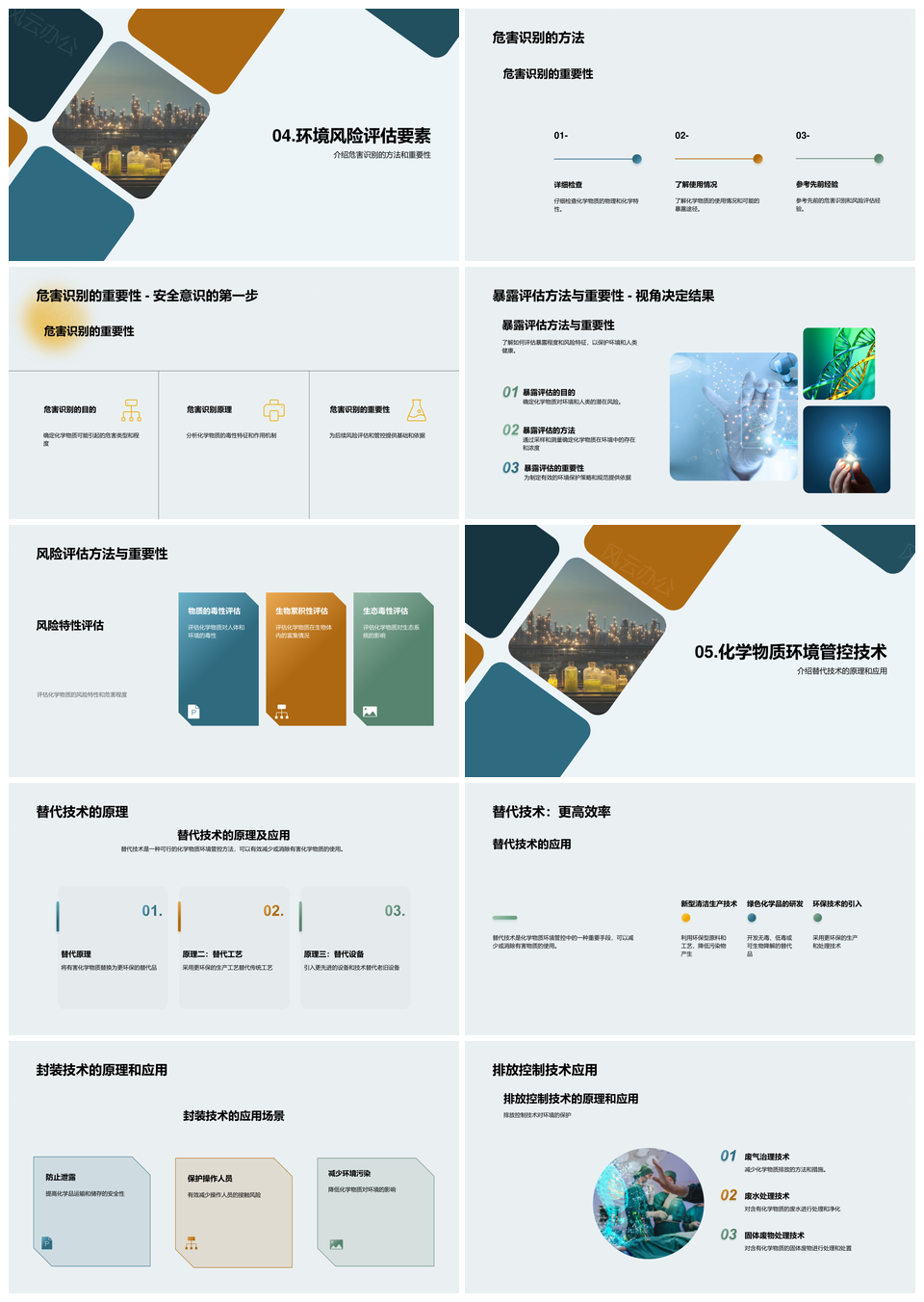 这是一张化学物质环境风险评估与管控教育PPT模板,包含化学物质、环境、风险评估、管控、教育等主题内容,也可用作化学物质环境风险评估管控、环境风险评估管控教育、化学物质环境风险评估、环境风险评估管控、评估管控教育、化学物质环境风险管控、环境风险管控教育、化学物质环境风险、环境风险评估、环境风险管控、评估管控、管控教育、化学物质管控、化学物质教育、环境风险教育等PPT场景使用。