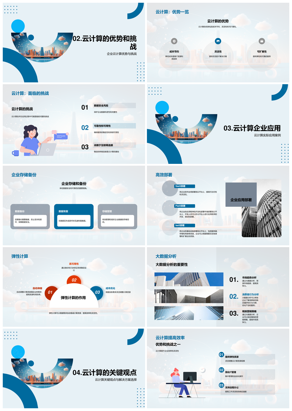 云计算技术架构服务部署模式应用优势挑战PPT模板推荐