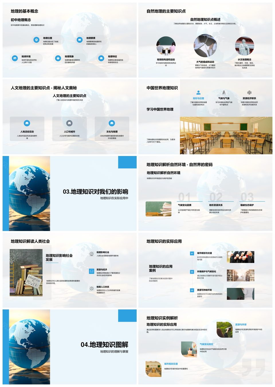 风云办公提供的初中地理自然人文中外知识图解应用PPT模板,下载格式为pptx,一共24页,作品中文字及图均可以修改和编辑,图片更改请在作品中右键图片并更换,文字修改请直接点击文字进行修改。