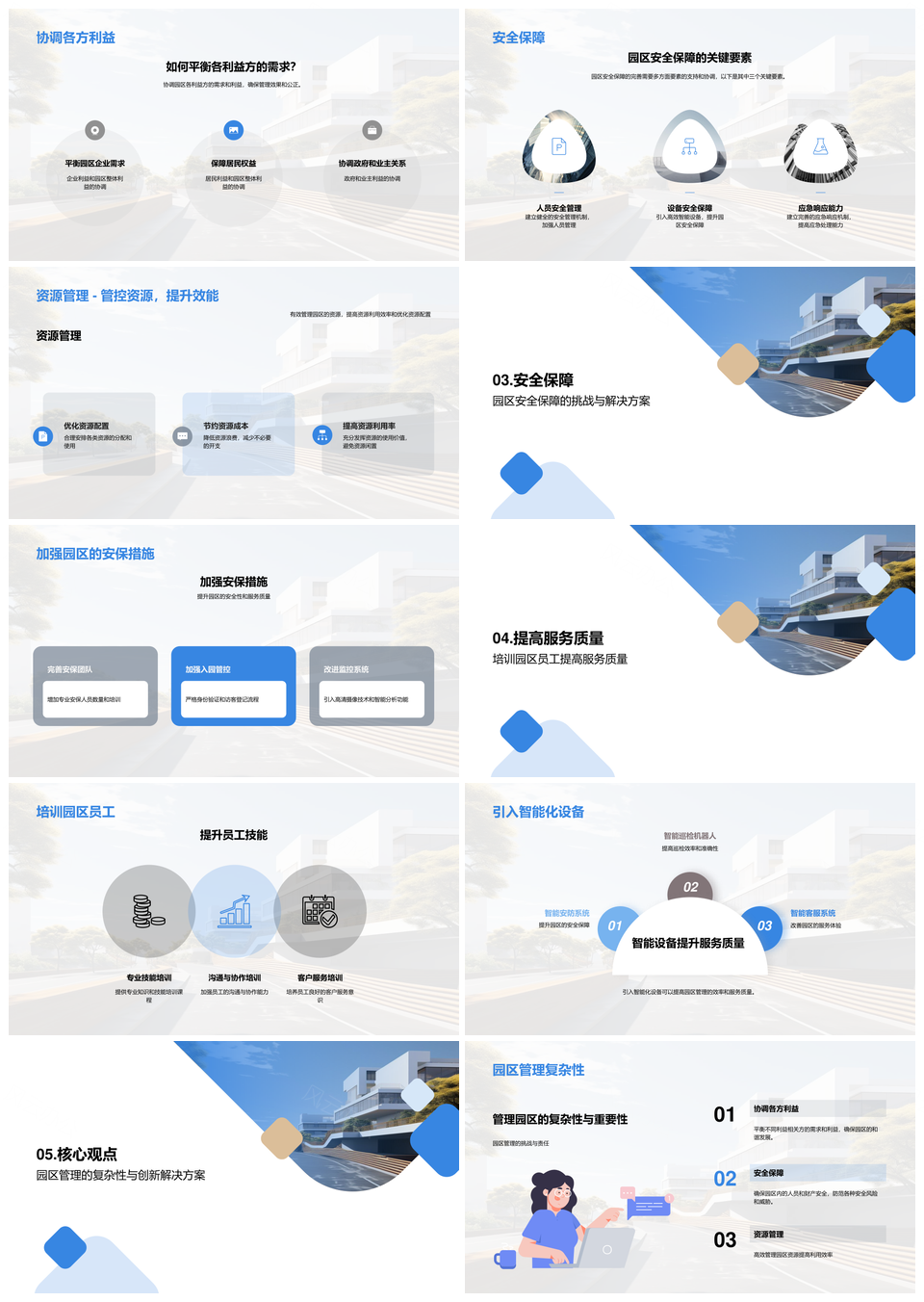 这是一张智慧园区管理挑战与安全资源创新PPT模板,包含智慧园区、管理、挑战、安全、资源、创新等主题内容,也可用作智慧园区管理挑战安全、智慧园区管理安全资源、智慧园区安全资源创新、管理挑战安全资源、挑战安全资源创新、智慧园区管理资源创新、智慧园区管理挑战、管理挑战安全、管理安全资源、安全资源创新、智慧园区安全资源、管理资源创新、挑战安全资源、智慧园区管理、安全资源创新等PPT场景使用。