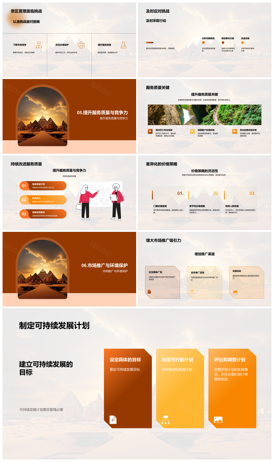 这是一张旅游景区管理团队职责与市场环保应对策略PPT模板,包含旅游景区、管理团队、职责、市场、环保、应对策略等主题内容,也可用作旅游景区管理团队职责、管理团队职责市场环保、职责市场环保应对策略、旅游景区管理职责市场、管理团队市场环保应对、旅游景区职责环保策略、职责环保应对策略、市场环保应对策略、旅游景区管理团队、管理团队职责市场、职责市场环保、市场环保应对、旅游景区职责、环保应对策略、管理团队市场等PPT场景使用。 风云办公提供的旅游景区管理团队职责与市场环保应对策略PPT模板,下载格式为pptx,一共27页,作品中文字及图均可以修改和编辑,图片更改请在作品中右键图片并更换,文字修改请直接点击文字进行修改。