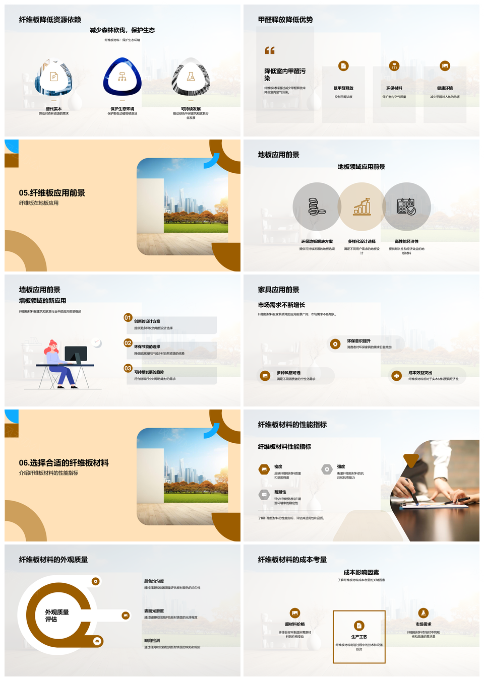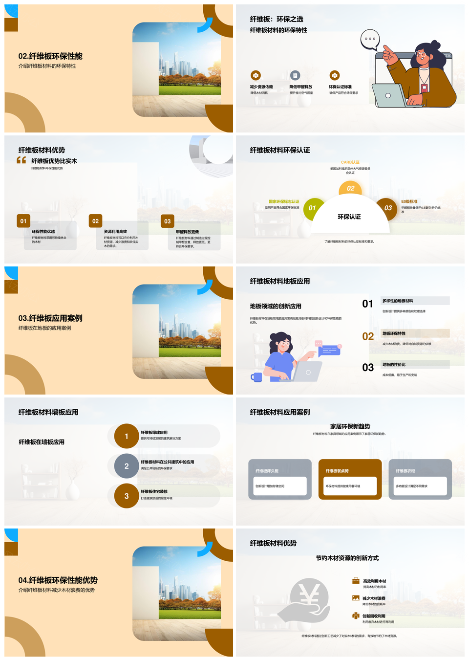 风云办公提供的纤维板环保建筑家具应用可持续发展PPT模板,下载格式为pptx,一共47页,作品中文字及图均可以修改和编辑,图片更改请在作品中右键图片并更换,文字修改请直接点击文字进行修改。