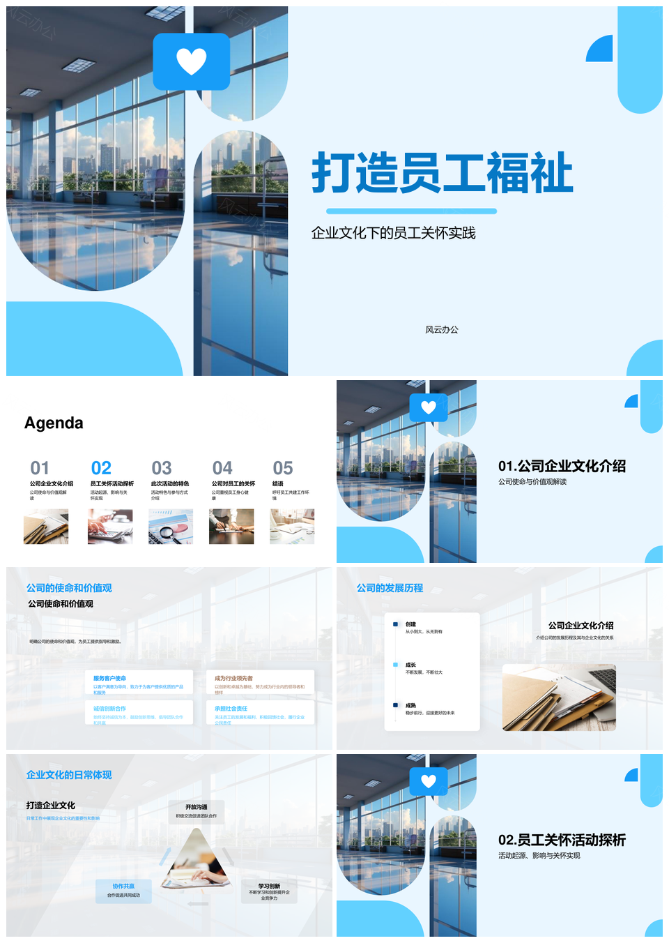 员工参与共建企业文化使命关怀福祉活动PPT模板