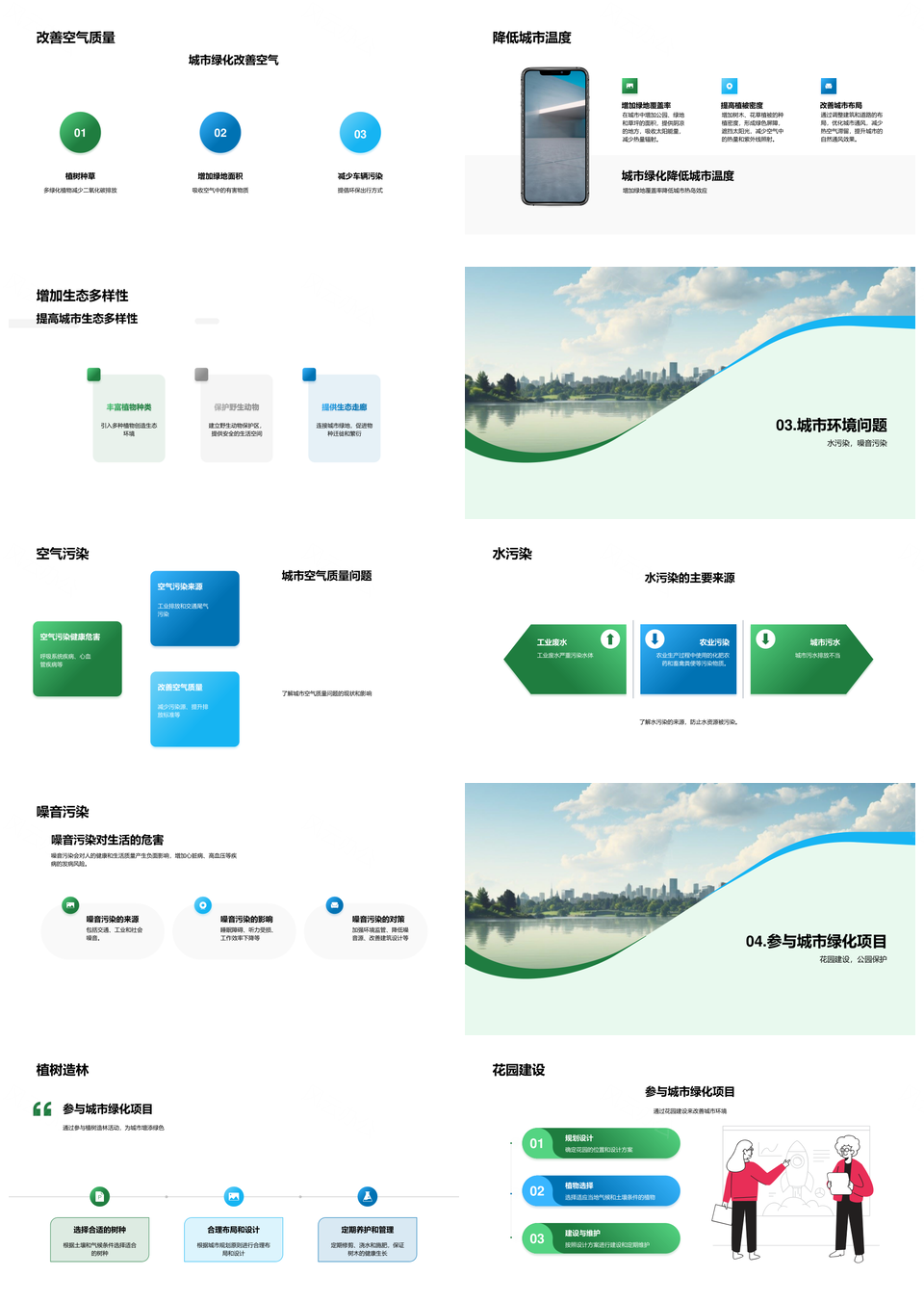 城市规划师绿化城市改善环境降温提质护生态PPT模板