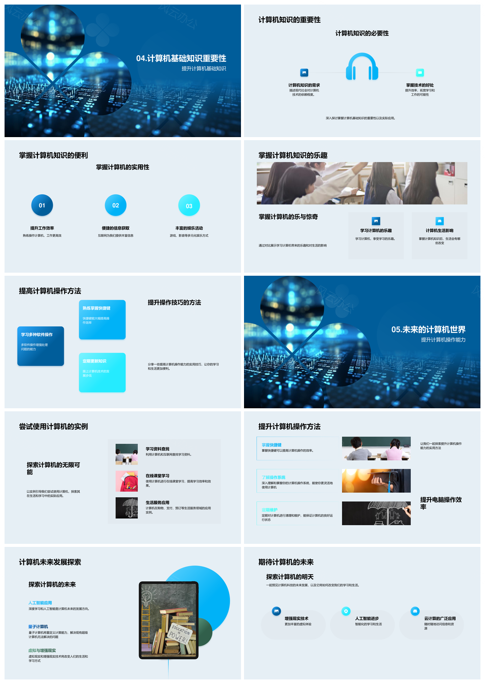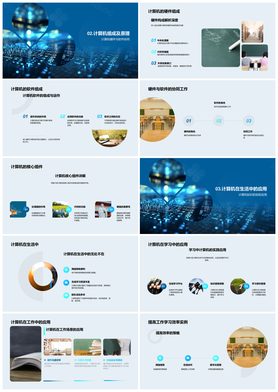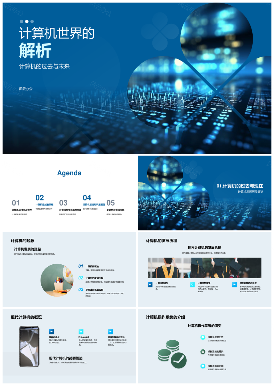 风云办公提供的计算机基础发展历程与软硬件组成解析PPT模板,下载格式为pptx,一共28页,作品中文字及图均可以修改和编辑,图片更改请在作品中右键图片并更换,文字修改请直接点击文字进行修改。