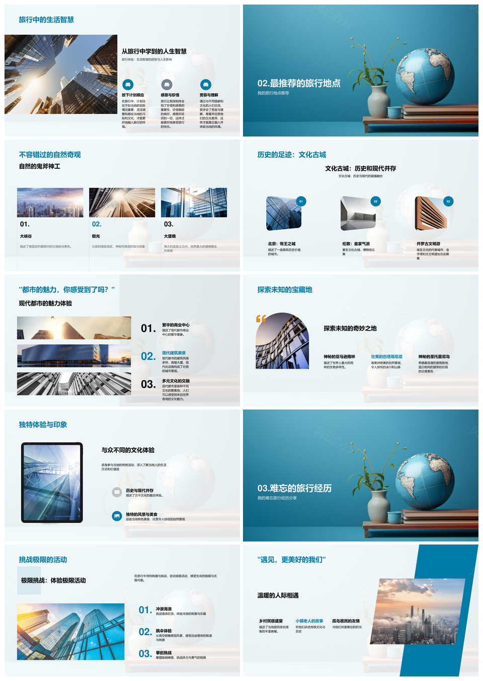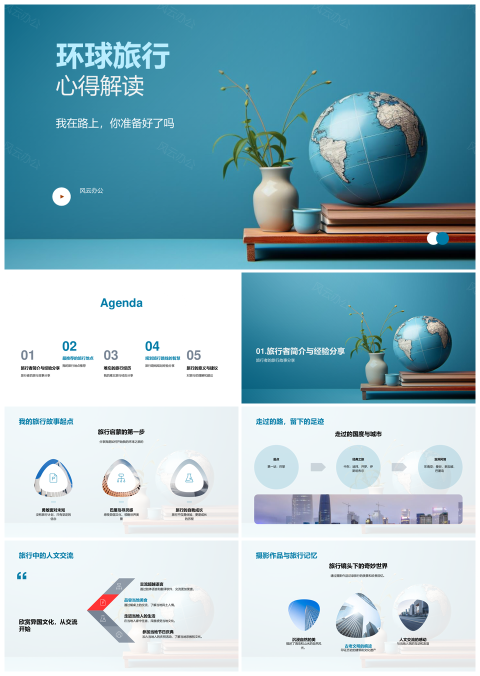 风云办公提供的环球旅行者探秘人文自然古城故事PPT模板,下载格式为pptx,一共33页,作品中文字及图均可以修改和编辑,图片更改请在作品中右键图片并更换,文字修改请直接点击文字进行修改。