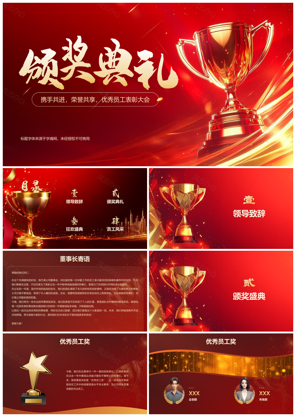 风云办公提供的优秀员工颁奖年会协作共启发展新程PPT模板,下载格式为pptx,一共17页,作品中文字及图均可以修改和编辑,图片更改请在作品中右键图片并更换,文字修改请直接点击文字进行修改。