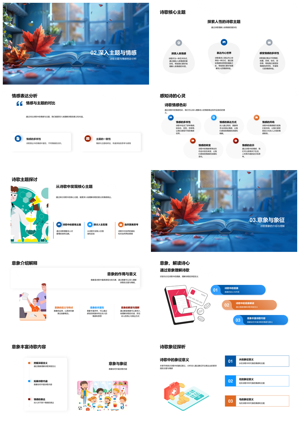 2025诗歌艺术韵律意象解读与主题元素赏析PPT模板