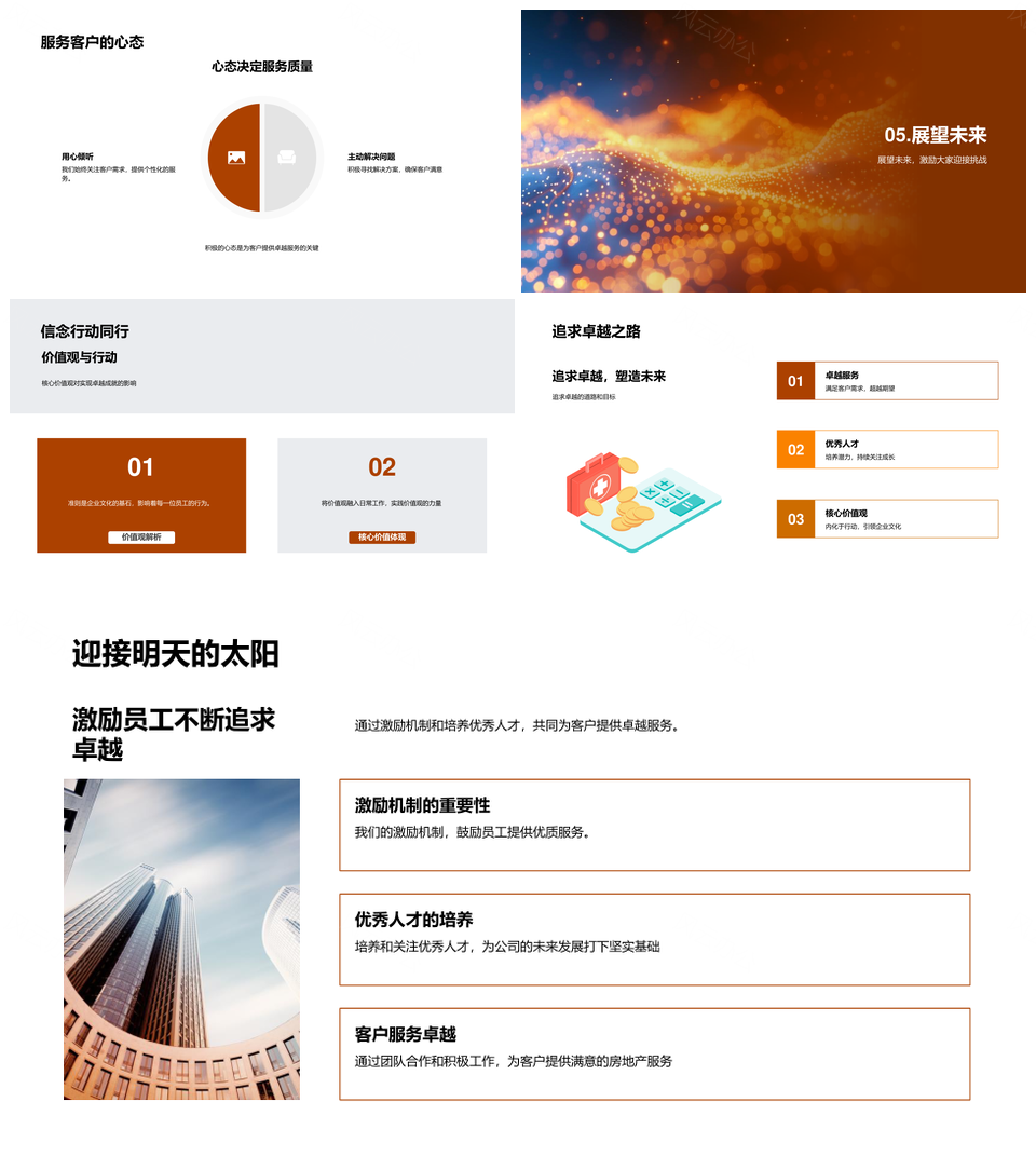本模板以活力橙为主色,与深色背景构成强烈视觉碰撞,诠释未来科技与数字化的融合基因。几何光感线条、全息网格与赛博朋克元素贯穿设计,搭配模块化智能图表与3D渲染质感素材,呈现兼具专业性与前瞻性的视觉体系。分层式架构确保信息逻辑清晰,动态渐变与极简留白平衡科技感与商务场景需求,适配数字化转型方案、智能产品发布及高科技产业分析等场景。所有版式支持一键替换企业VI系统,通过创新视觉语言传递硬核技术实力,助力构建专业可靠的科技企业形象。