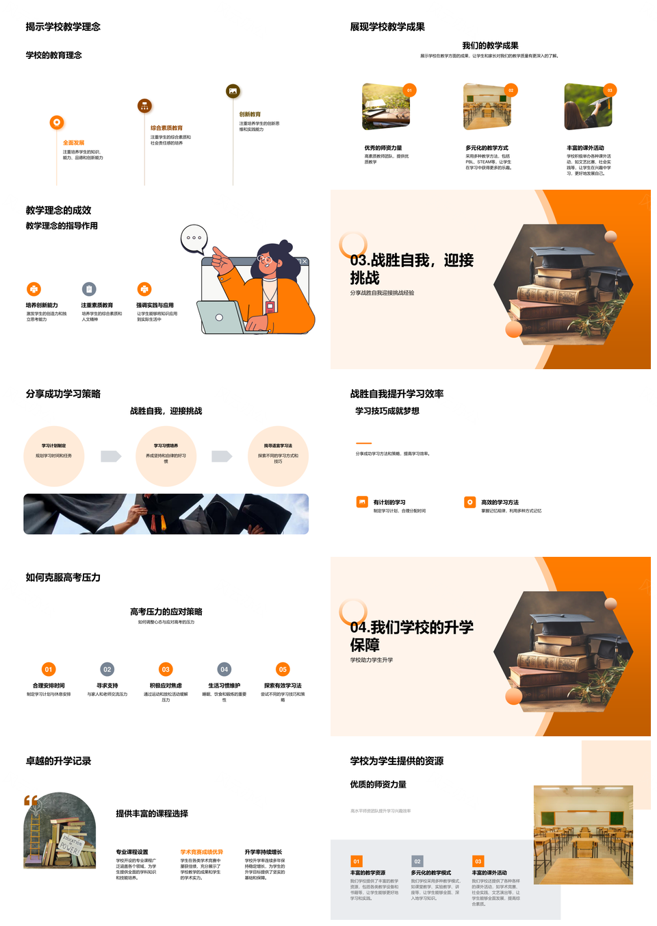 风云办公提供的高考自我超越教学策略升学课程成果PPT模板,下载格式为pptx,一共23页,作品中文字及图均可以修改和编辑,图片更改请在作品中右键图片并更换,文字修改请直接点击文字进行修改。