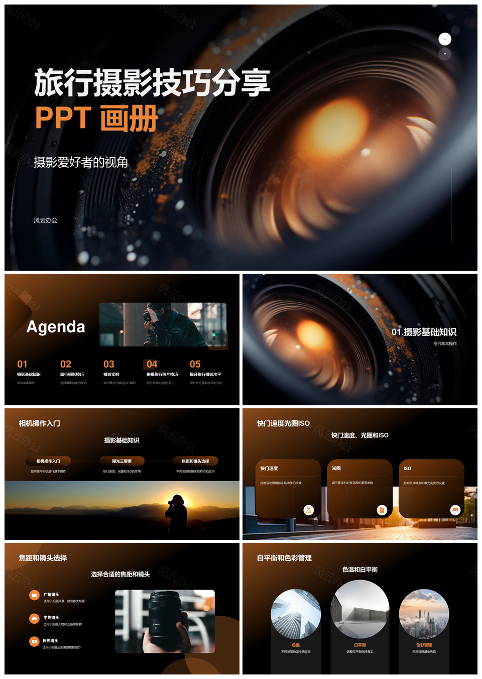 旅行摄影相机操作曝光构图镜头色彩技巧PPT模板推荐
