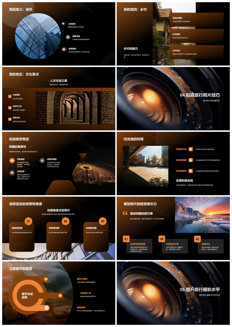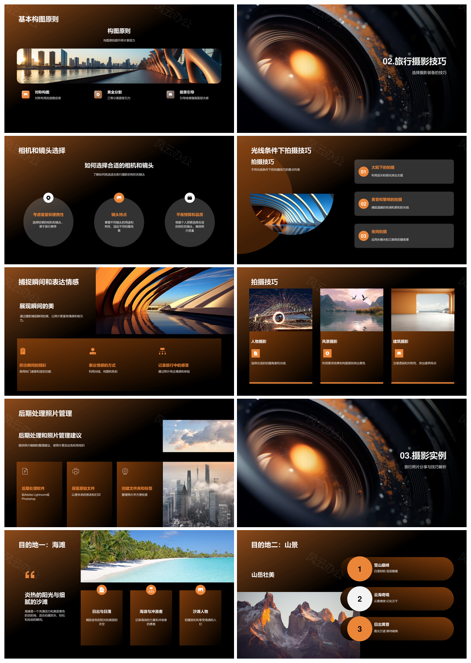 摄影师旅行摄影技巧器材行程光影构图地点文化PPT模板