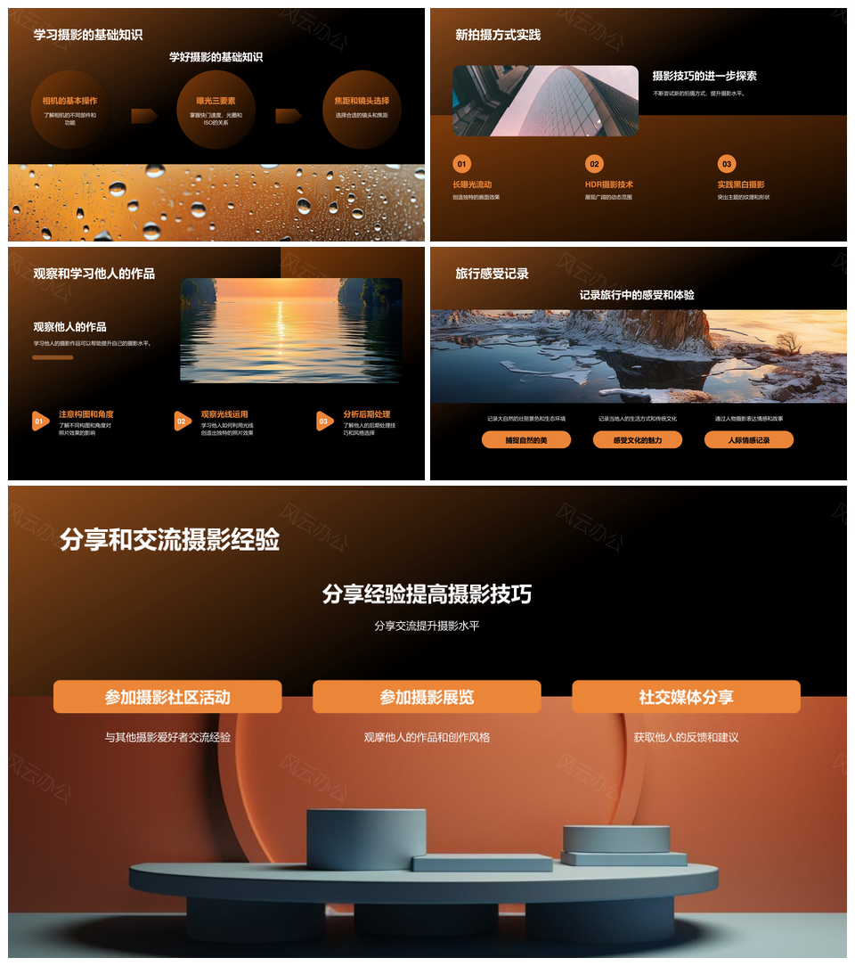摄影俱乐部旅行技巧构图色彩对比相册图集PPT模板