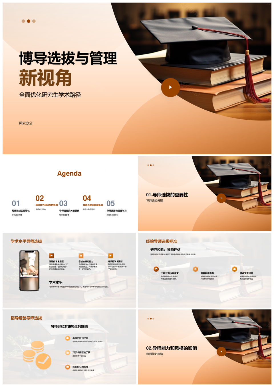 风云办公提供的博士导师选拔管理与学术指导经验研究PPT模板,下载格式为pptx,一共20页,作品中文字及图均可以修改和编辑,图片更改请在作品中右键图片并更换,文字修改请直接点击文字进行修改。