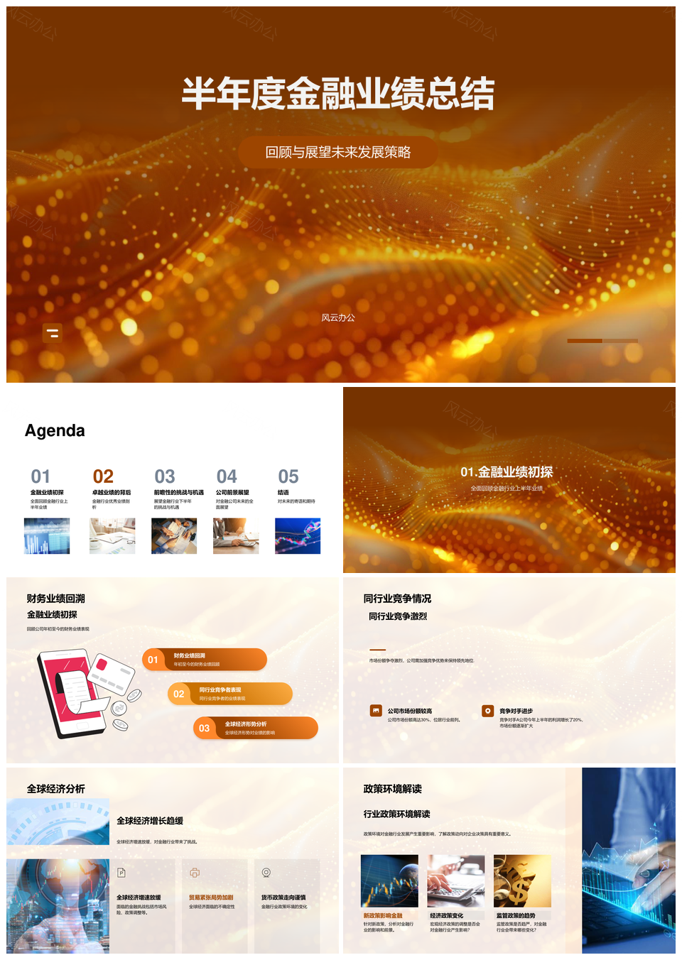 半年度金融业绩全球经济形势行业政策分析PPT模板推荐