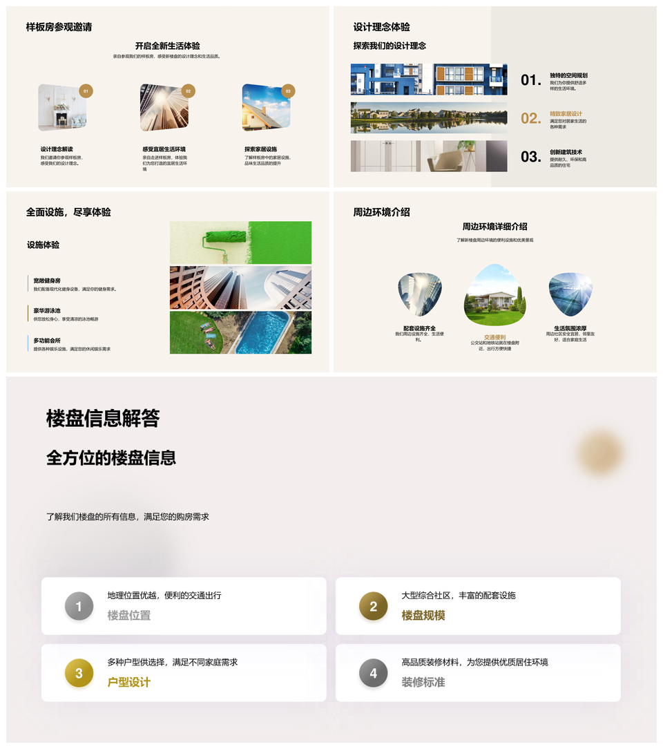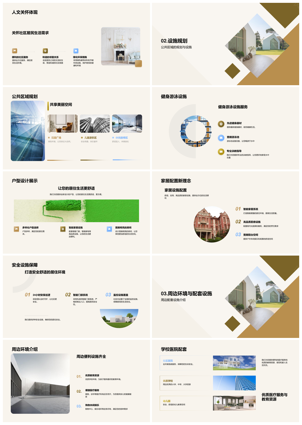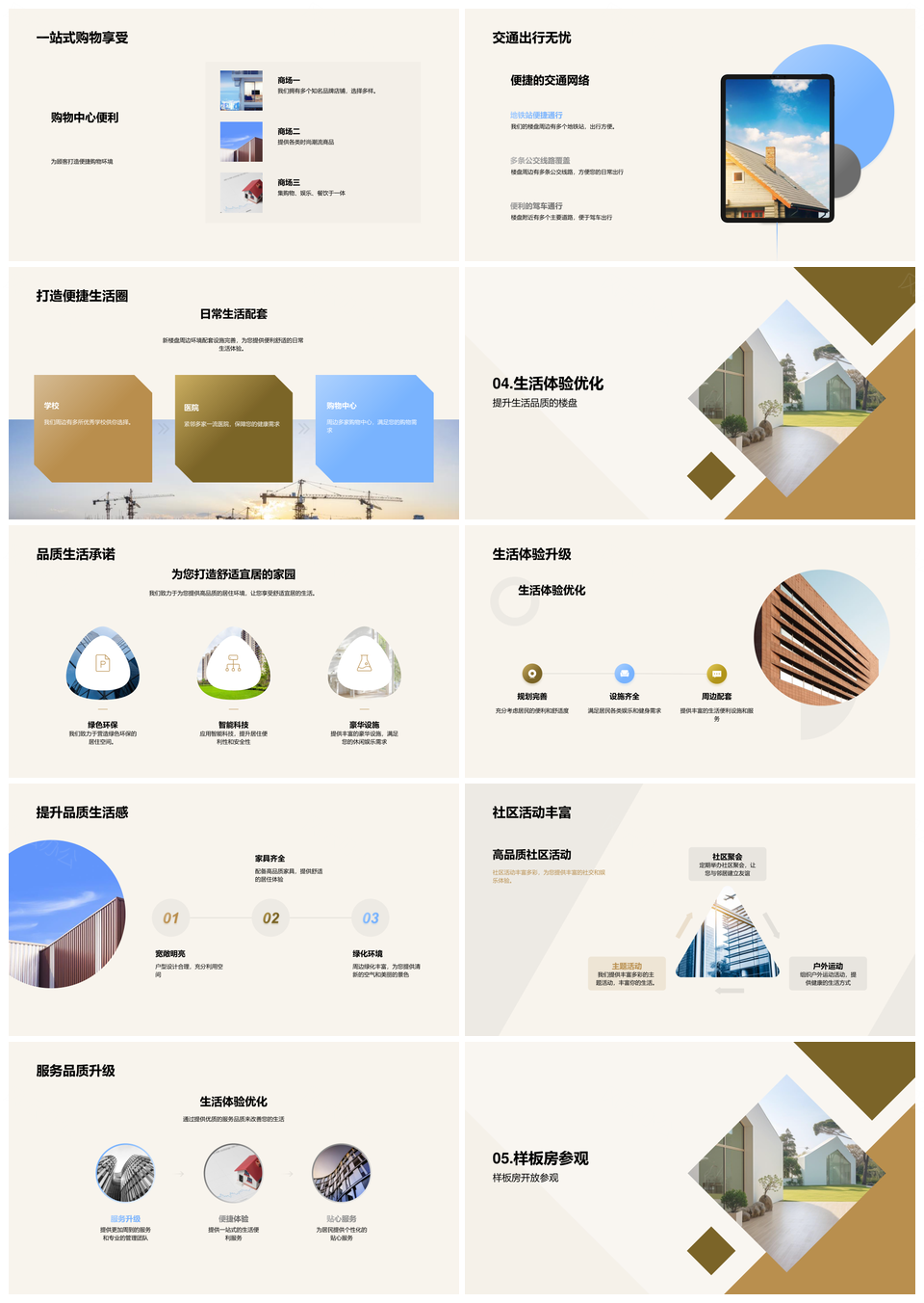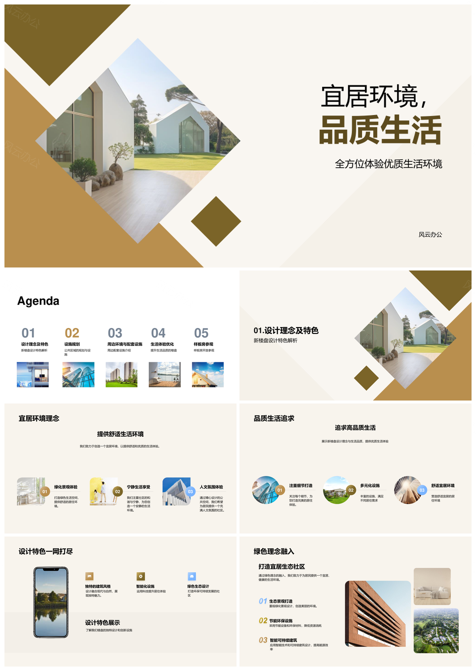 这是一张宜居环境品质生活新楼盘设计规划配套优化体验PPT模板,包含宜居环境、品质生活、新楼盘、设计规划、配套优化、体验等主题内容,也可用作宜居环境品质生活、宜居环境新楼盘设计、宜居环境设计规划配套、宜居环境配套优化体验、环境品质生活新楼盘、环境品质设计规划优化、环境新楼盘配套优化、品质生活新楼盘设计、品质生活设计规划体验、新楼盘设计规划配套、新楼盘规划配套优化、设计规划配套优化体验、设计规划优化体验、规划配套优化体验、配套优化体验等PPT场景使用。 风云办公提供的宜居环境品质生活新楼盘设计规划配套优化体验PPT模板,下载格式为pptx,一共33页,作品中文字及图均可以修改和编辑,图片更改请在作品中右键图片并更换,文字修改请直接点击文字进行修改。