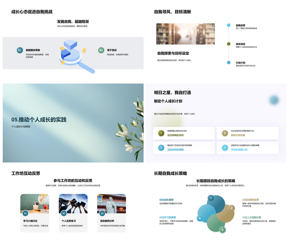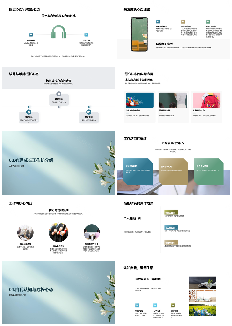 风云办公提供的大学心理成长自我认知多维发展策略PPT模板,下载格式为pptx,一共24页,作品中文字及图均可以修改和编辑,图片更改请在作品中右键图片并更换,文字修改请直接点击文字进行修改。