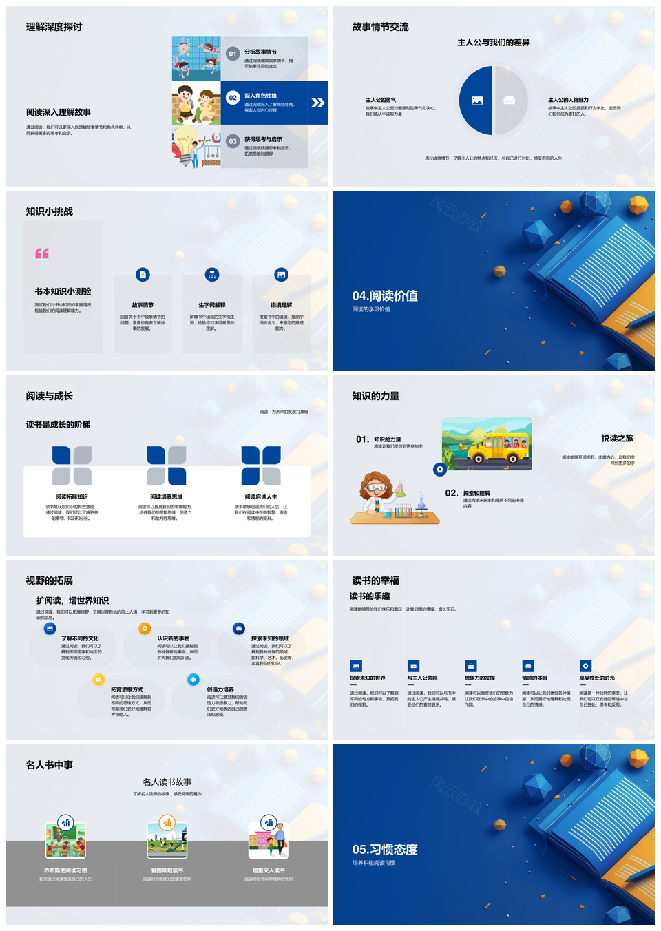 阅读分享教学字词故事书籍阅读理解持久价值PPT模板推荐