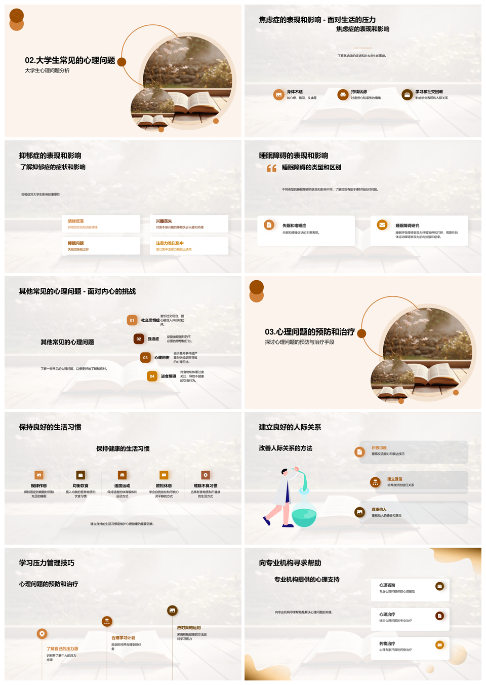 这是一张大学生心理健康焦虑抑郁睡眠与人际习惯探析PPT模板,包含大学生、心理健康、焦虑、抑郁、睡眠、人际习惯等主题内容,也可用作大学生心理健康焦虑抑郁、心理健康焦虑抑郁睡眠、焦虑抑郁睡眠人际习惯、抑郁睡眠人际习惯探析、大学生心理健康焦虑、大学生心理健康抑郁、大学生焦虑抑郁睡眠、心理健康焦虑抑郁、焦虑抑郁睡眠、抑郁睡眠人际习惯、睡眠人际习惯探析、大学生心理健康、心理健康睡眠人际习惯、大学生睡眠人际习惯、焦虑抑郁等PPT场景使用。 风云办公提供的大学生心理健康焦虑抑郁睡眠与人际习惯探析PPT模板,下载格式为pptx,一共28页,作品中文字及图均可以修改和编辑,图片更改请在作品中右键图片并更换,文字修改请直接点击文字进行修改。