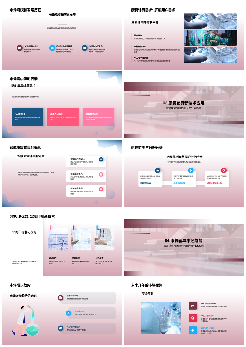 风云办公提供的康复辅具制造商科技发展趋势解析PPT模板,下载格式为pptx,一共23页,作品中文字及图均可以修改和编辑,图片更改请在作品中右键图片并更换,文字修改请直接点击文字进行修改。