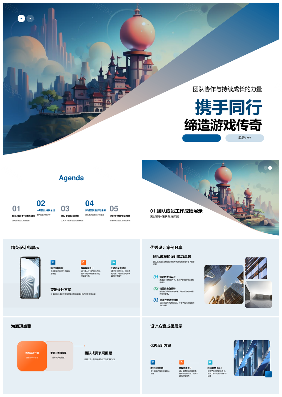 风云办公提供的团队协作创新技术共筑游戏传奇PPT模板,下载格式为pptx,一共33页,作品中文字及图均可以修改和编辑,图片更改请在作品中右键图片并更换,文字修改请直接点击文字进行修改。