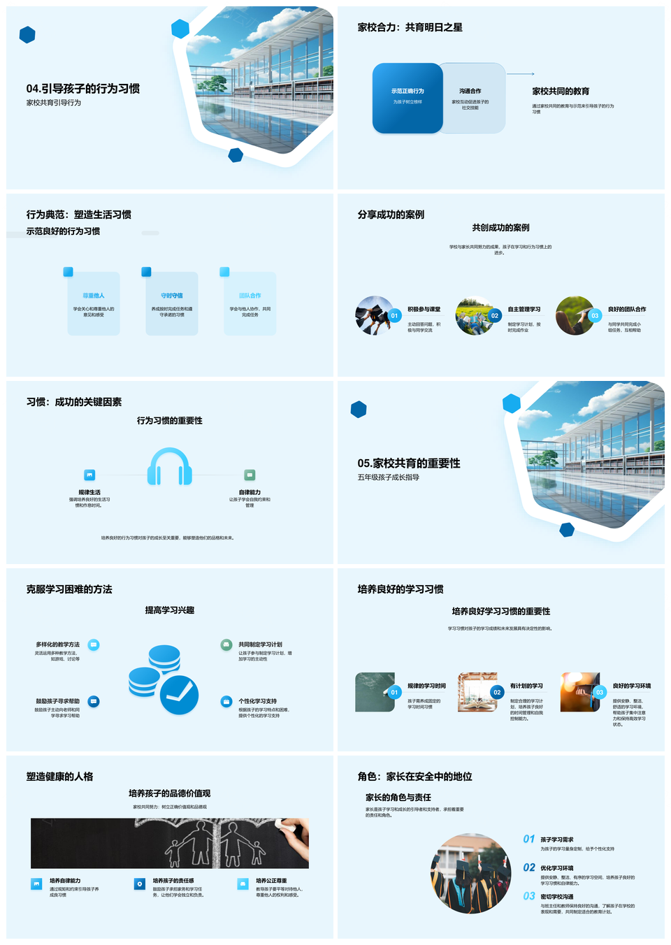 风云办公提供的家校携手共育五年级未来PPT模板,下载格式为pptx,一共29页,作品中文字及图均可以修改和编辑,图片更改请在作品中右键图片并更换,文字修改请直接点击文字进行修改。