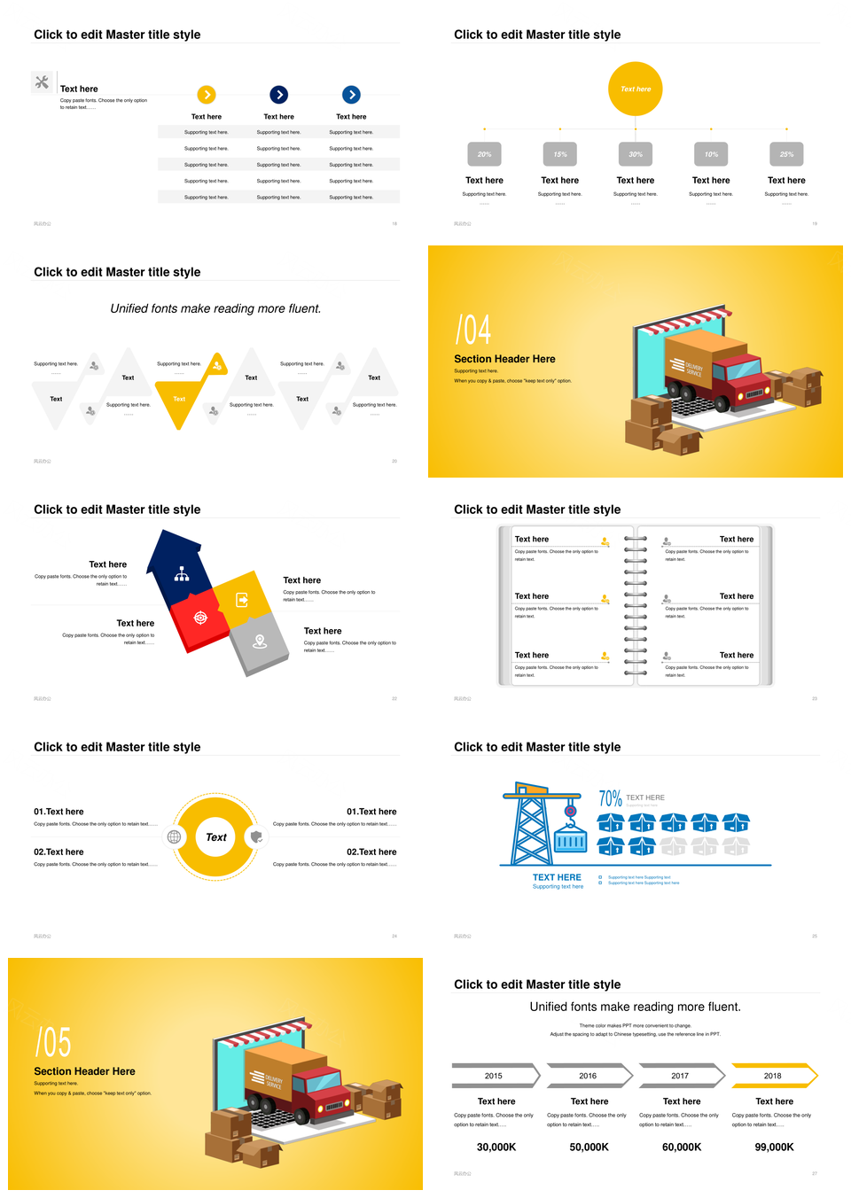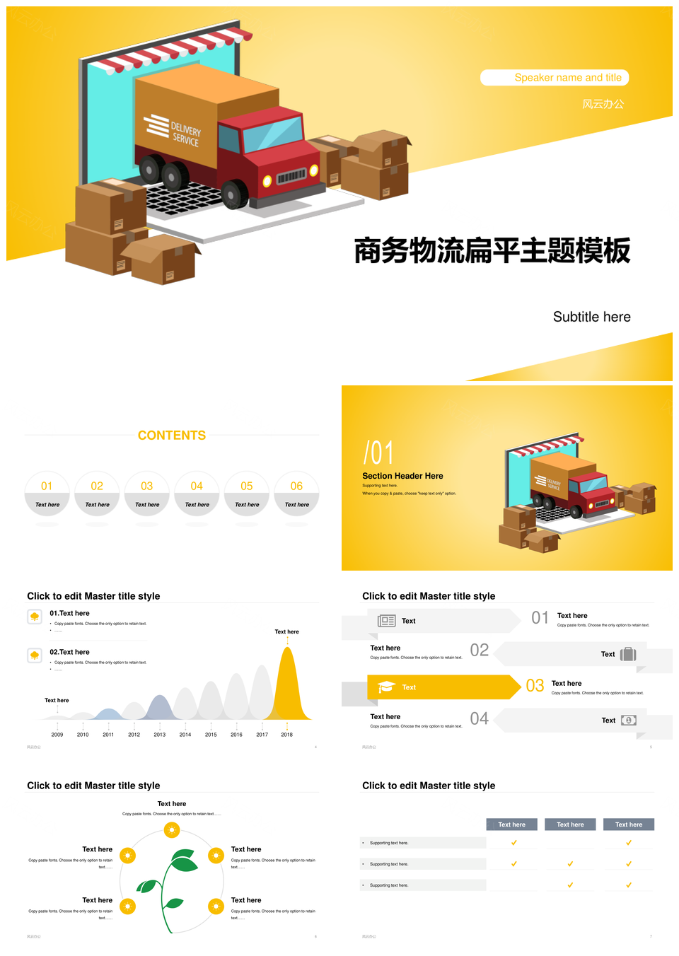 风云办公提供的商务物流扁平工作总结PPT案例,下载格式为pptx,一共31页,作品中文字及图均可以修改和编辑,图片更改请在作品中右键图片并更换,文字修改请直接点击文字进行修改。