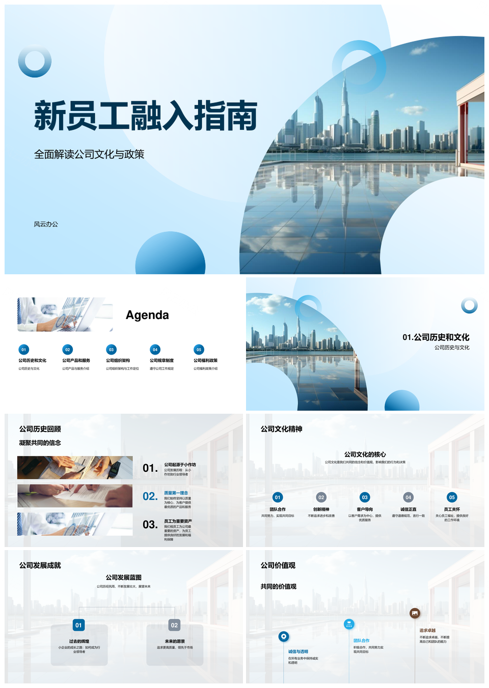 风云办公提供的新员工融入公司文化政策产品架构培训PPT模板,下载格式为pptx,一共33页,作品中文字及图均可以修改和编辑,图片更改请在作品中右键图片并更换,文字修改请直接点击文字进行修改。