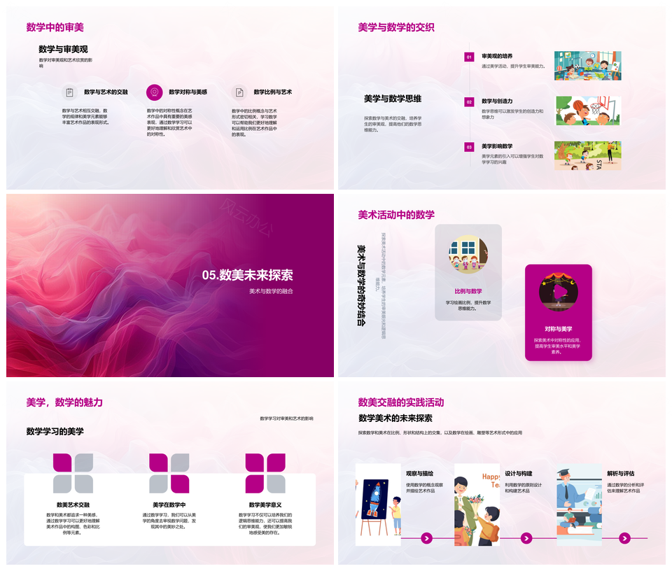 本模板以浅紫与灰紫为基调,融合霓虹紫动态渐变营造科技氛围,几何线条与水墨肌理叠加体现艺术张力。图表采用模块化智能框架,内置可视化数据图形与矢量无损图标库,层级结构清晰适配商务提案、产品发布等多场景。版面以极简素净为核心,通过色块分割与轻量留白提升阅读效率,手绘风插画及科技感光效组件可自由替换。所有元素基于灵活母版设计,支持一键修改主题色,分层文件逻辑严谨,兼顾专业表达与高效编辑。