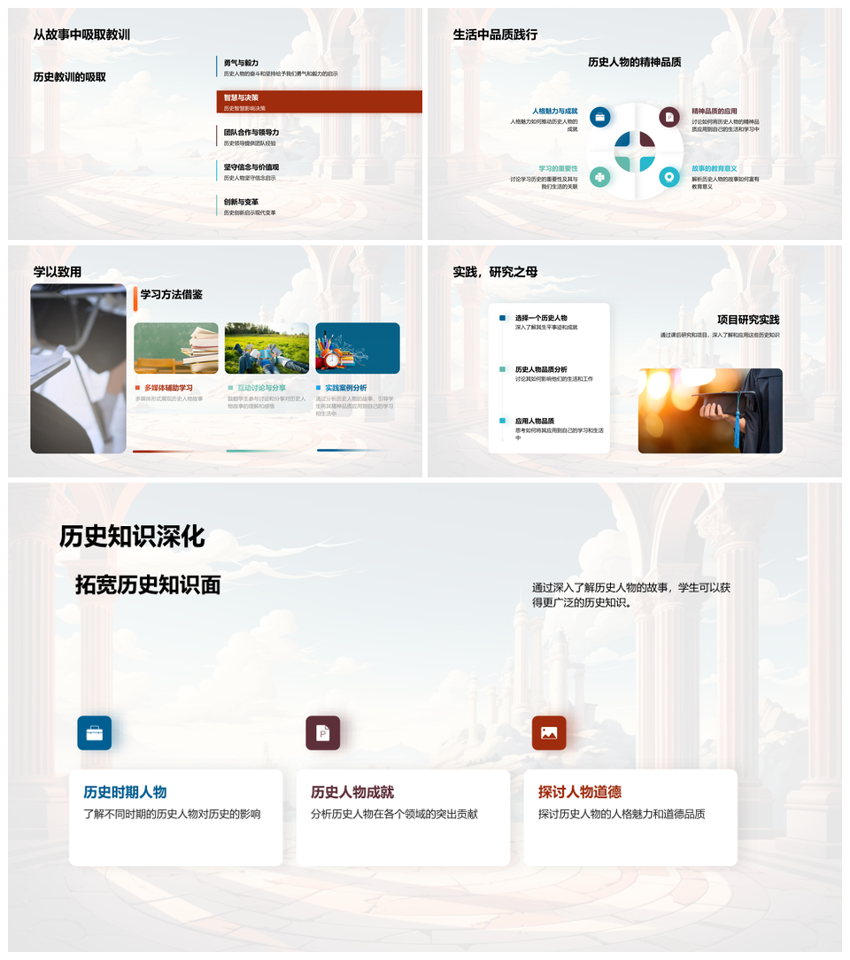 这是一张历史名人精神品质教育科技传承影响PPT模板,包含历史名人、精神品质、教育、科技、传承、影响等主题内容,也可用作历史名人精神品质、名人精神品质教育、精神品质教育科技、教育科技传承影响、历史名人精神、名人精神品质、精神品质教育、品质教育科技、教育科技传承、科技传承影响、历史名人、名人精神、精神品质、教育科技、科技传承等PPT场景使用。