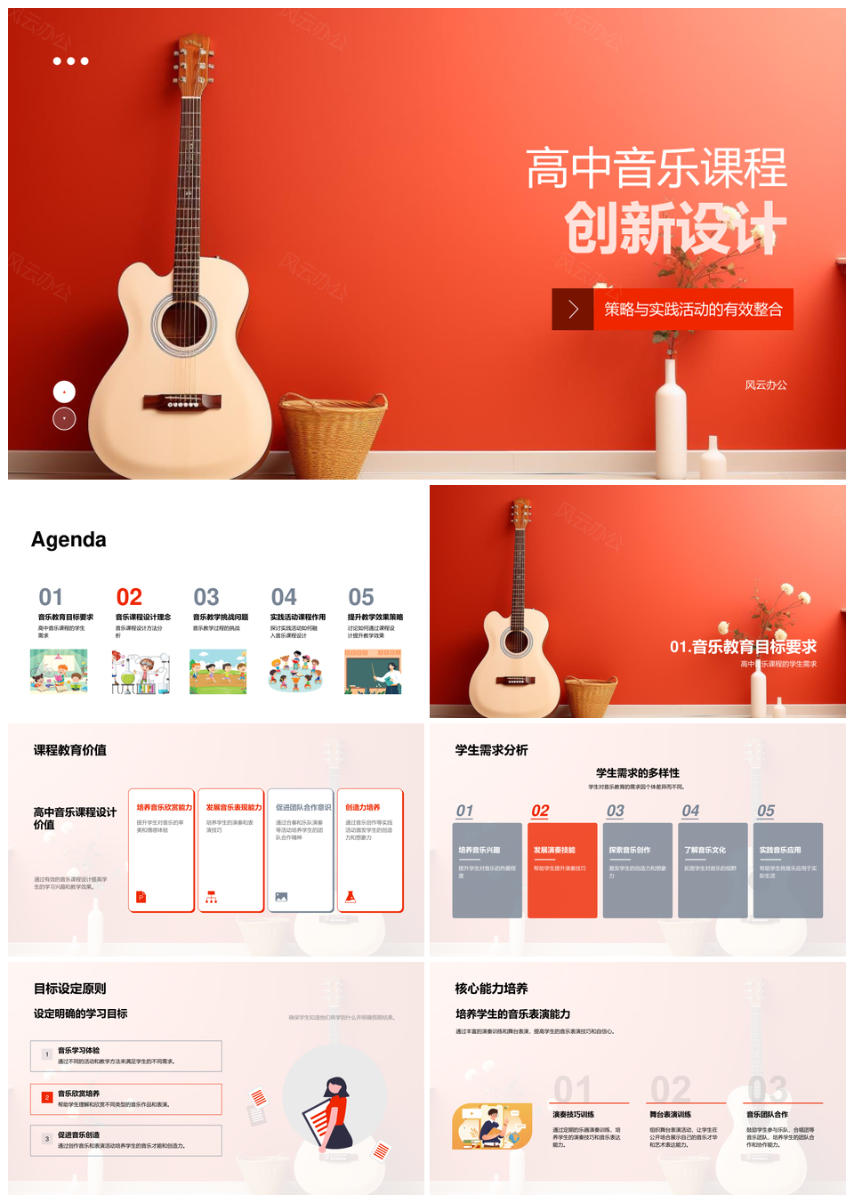 风云办公提供的高中音乐核心能力培养课程创新设计PPT模板,下载格式为pptx,一共33页,作品中文字及图均可以修改和编辑,图片更改请在作品中右键图片并更换,文字修改请直接点击文字进行修改。