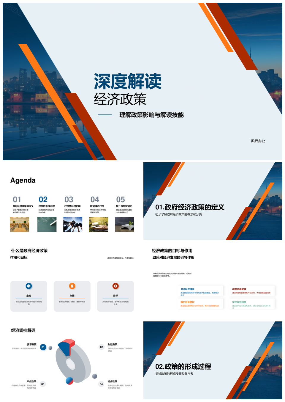 风云办公提供的政府经济政策深度解读与批判思考PPT模板,下载格式为pptx,一共23页,作品中文字及图均可以修改和编辑,图片更改请在作品中右键图片并更换,文字修改请直接点击文字进行修改。