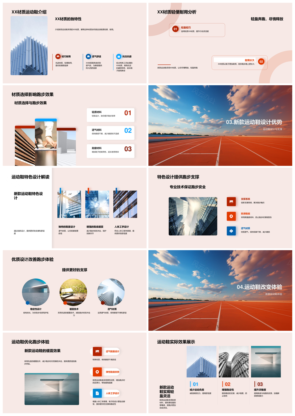 跑步新风尚XX材质运动鞋升级体验性能PPT模板推荐