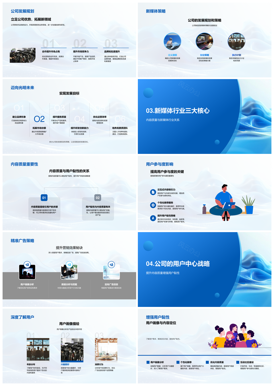 新媒体行业发展趋势公司规划策略用户参与内容精准投放画像PPT模板推荐