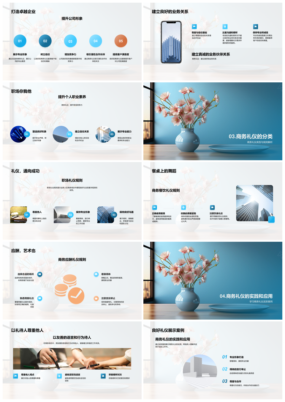 风云办公提供的商务礼仪职场形象与餐饮应酬指南PPT模板,下载格式为pptx,一共23页,作品中文字及图均可以修改和编辑,图片更改请在作品中右键图片并更换,文字修改请直接点击文字进行修改。