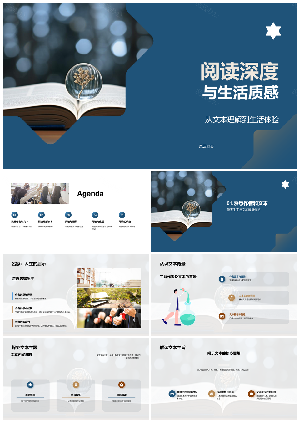 风云办公提供的深读经典文本体悟生活质感PPT模板,下载格式为pptx,一共28页,作品中文字及图均可以修改和编辑,图片更改请在作品中右键图片并更换,文字修改请直接点击文字进行修改。