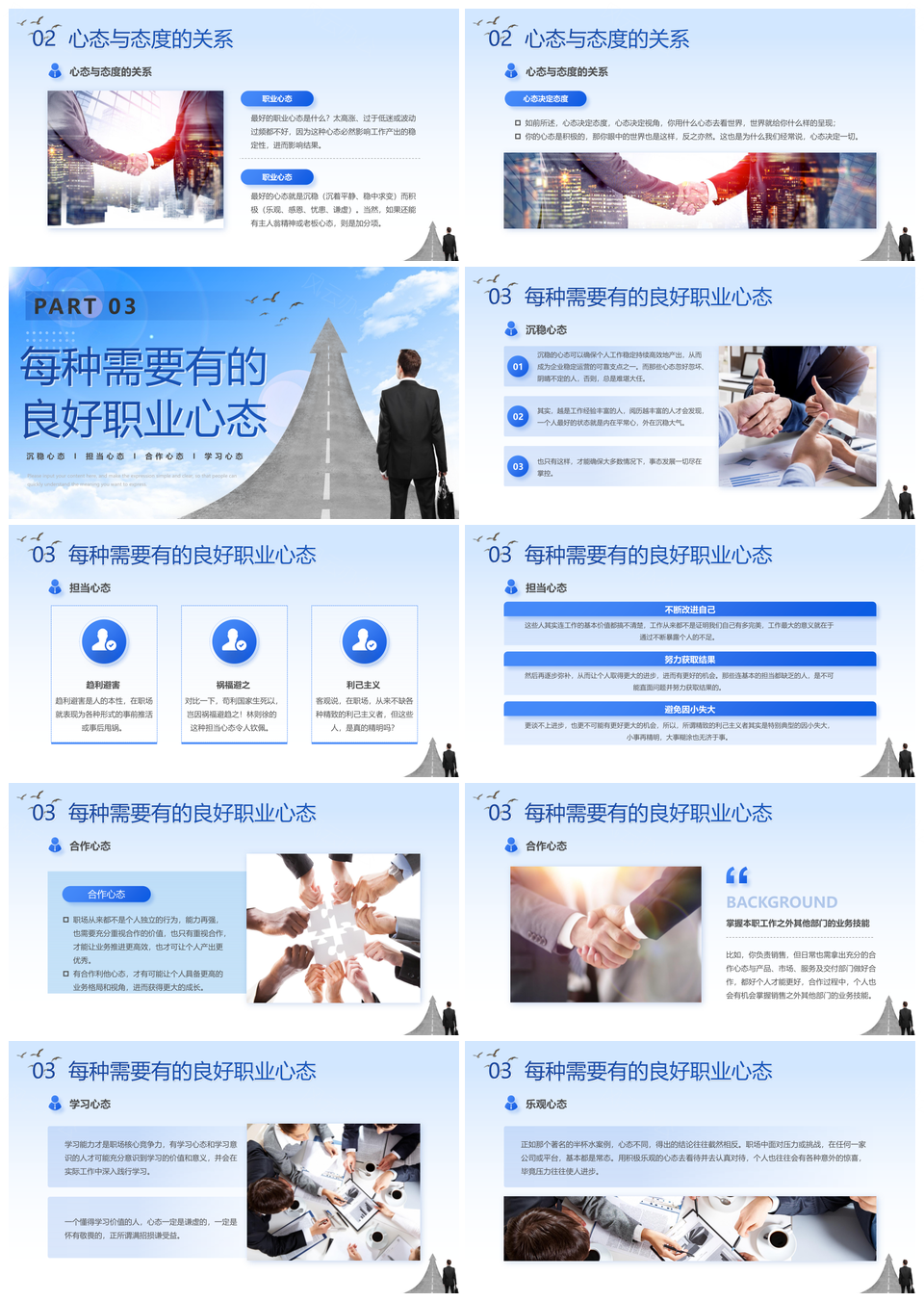 这是一张蓝色商务企业团队管理八大心态培训工作汇报PPT模板,包含蓝色、商务、企业、团队、管理、八大心态、培训、工作、汇报等主题内容,也可用作蓝色商务企业团队管理八大心态培训工作汇报、商务企业团队管理八大心态培训工作汇报、企业团队管理八大心态培训工作汇报、团队管理八大心态培训工作汇报、蓝色商务企业团队管理八大心态、商务企业团队管理八大心态培训、企业团队管理八大心态培训工作、八大心态培训工作汇报团队管理、蓝色商务企业团队管理培训、商务企业八大心态培训工作、企业团队管理培训工作汇报、蓝色商务八大心态培训、商务企业团队管理心态、蓝色商务企业培训、企业团队管理八大心态、团队管理培训工作汇报、八大心态培训工作、蓝色商务企业、商务企业团队管理、企业团队管理八大、团队管理八大心态、八大心态培训、心态培训工作汇报、企业团队管理培训、培训工作汇报等PPT场景使用。 风云办公提供的蓝色商务企业团队管理八大心态培训工作汇报PPT模板,下载格式为pptx,一共24页,作品中文字及图均可以修改和编辑,图片更改请在作品中右键图片并更换,文字修改请直接点击文字进行修改。