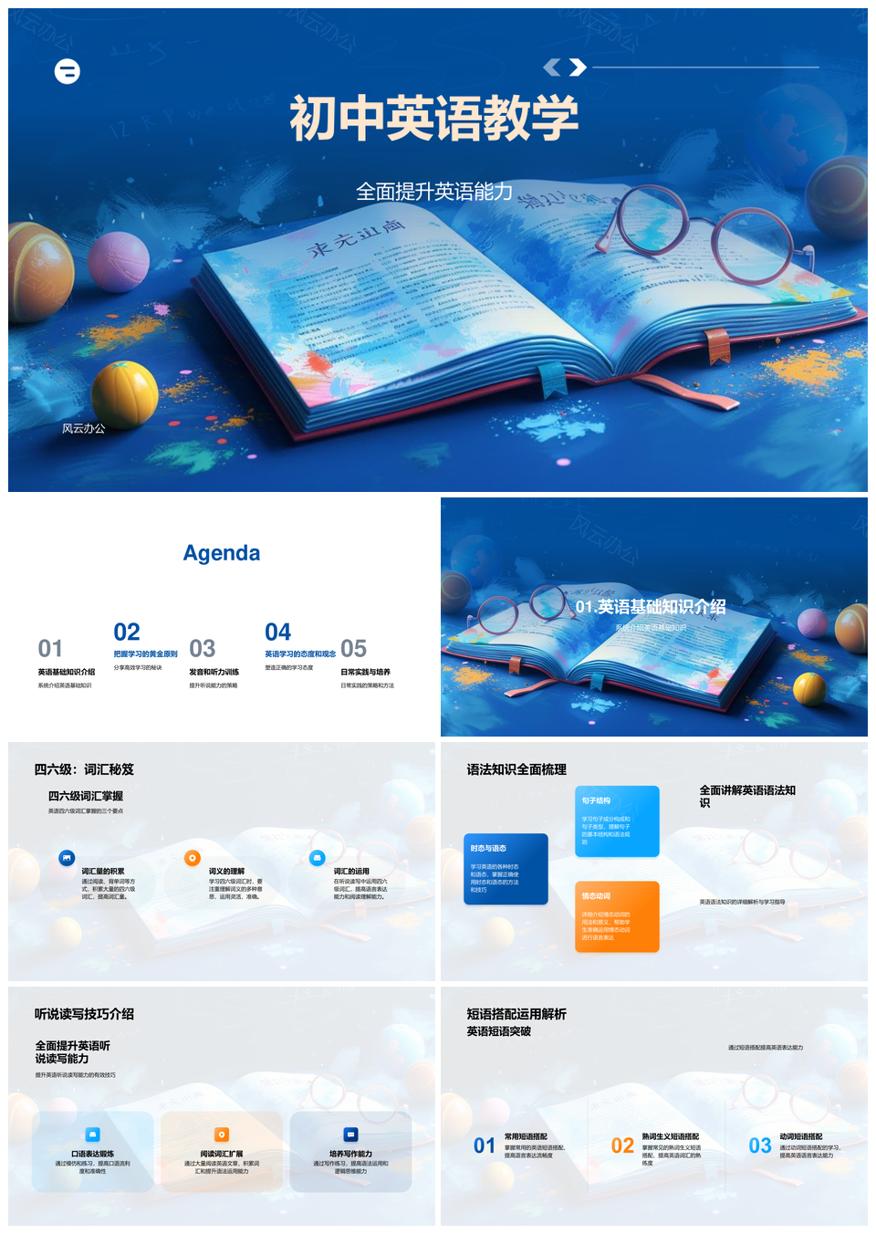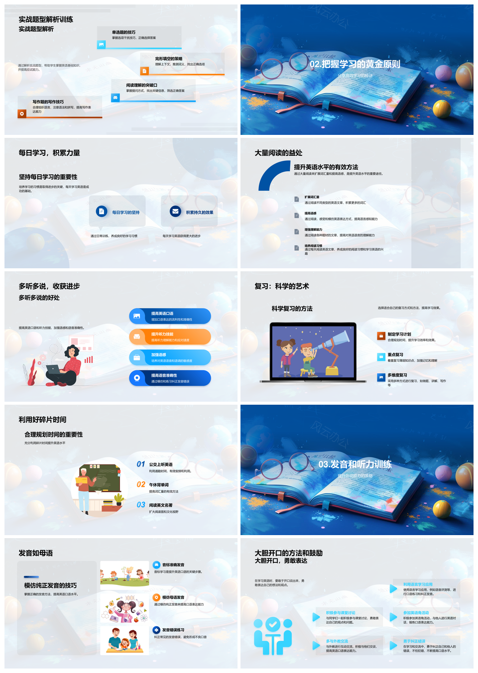 初中英语教学全览阅读技巧提升黑板PPT模板
