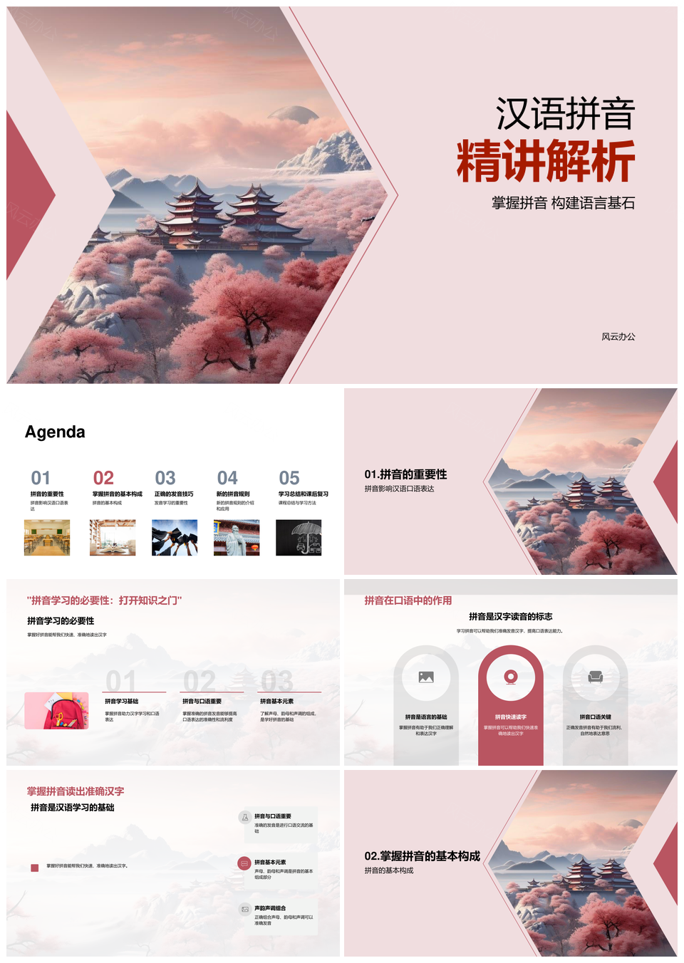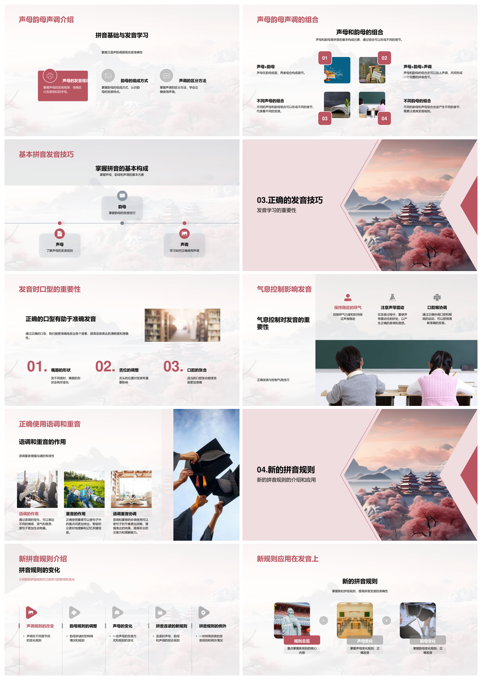 风云办公提供的汉语拼音声韵调规则发音技巧解析PPT模板,下载格式为pptx,一共23页,作品中文字及图均可以修改和编辑,图片更改请在作品中右键图片并更换,文字修改请直接点击文字进行修改。
